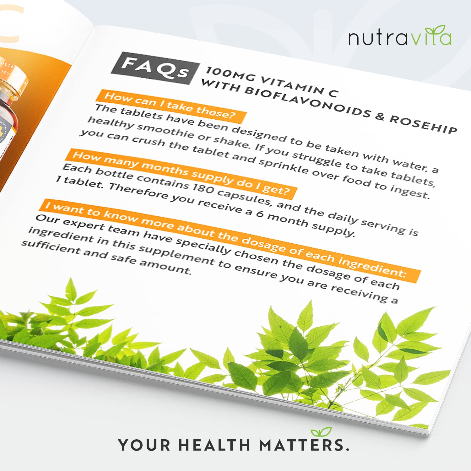Nutravita's Vitamin C with Bioflavonoids and Rosehip provides 1,000mg Vitamin C per vegan tablet, and each bottle comes with a 6 month supply.Vitamin C Contributes to the: