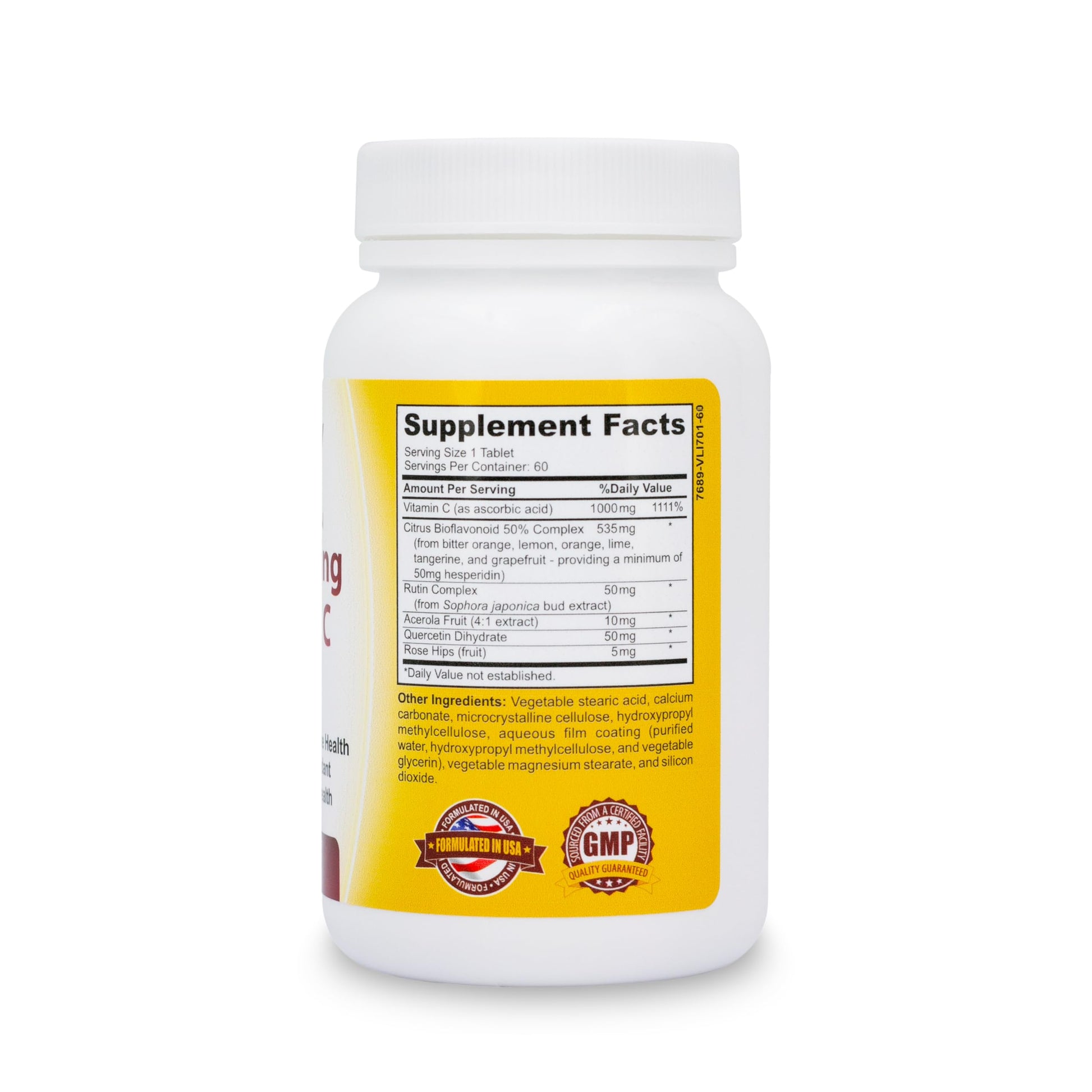 Vitamin C 1000mg Maximum Skin Brightening with Rose HIPS and Bioflavonoids Immune Support Supplement, Antioxidant Tablets Healthy Aging, Builds Energy and Overall Well-Being