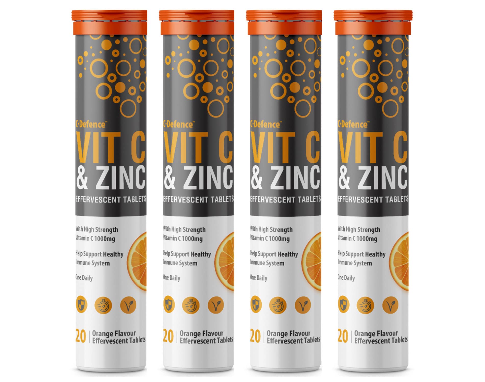 Vitamin C 1000mg & Zinc 15mg Orange Flavour Effervescent Tablets by Club Vits (4 Tubes of 20 Tablets)