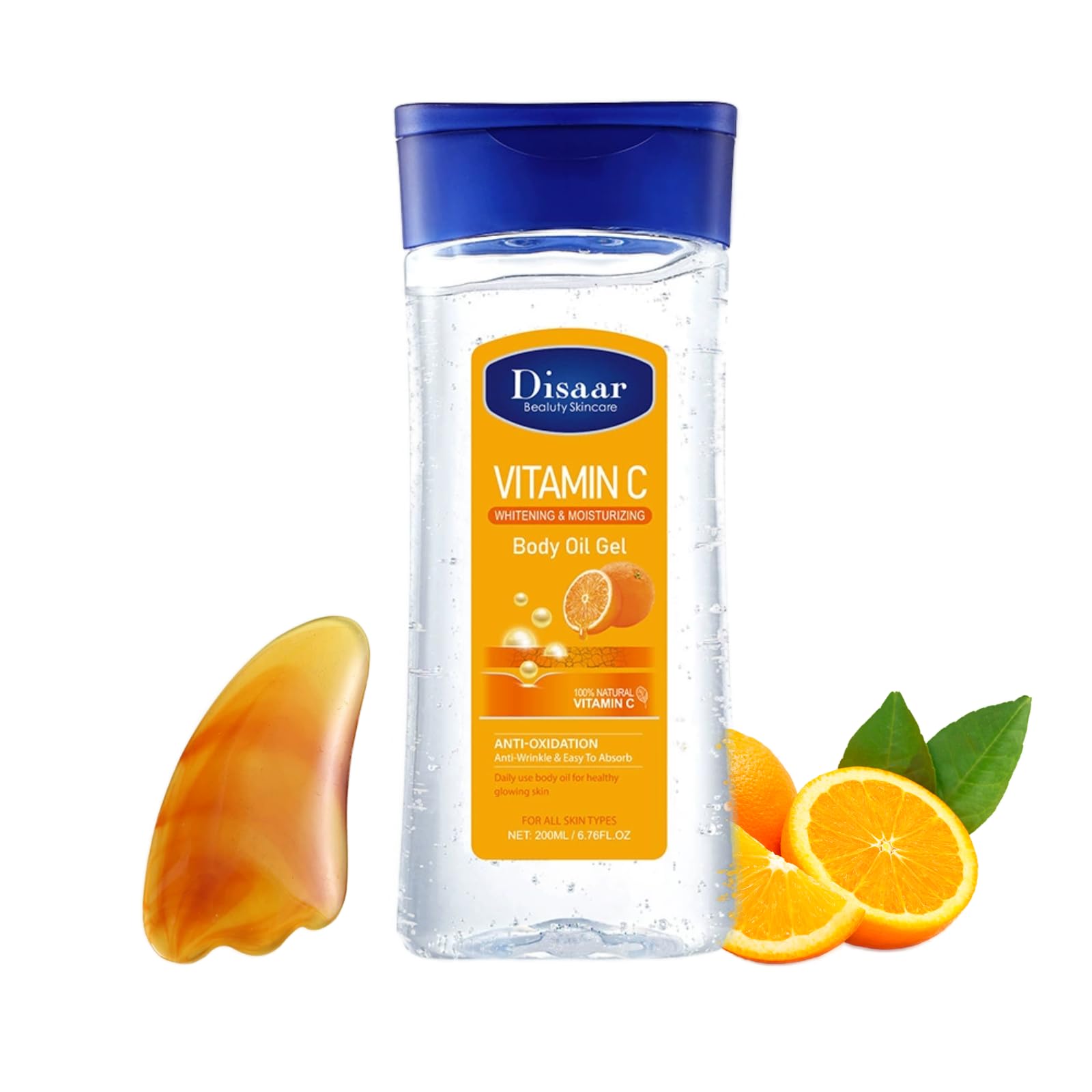 Vitamin C Body Oil with Gua Sha Tool - Essential Oils for Skin, Hydrating & Firming Moisturiser for Daily Skincare Routine, 200ml