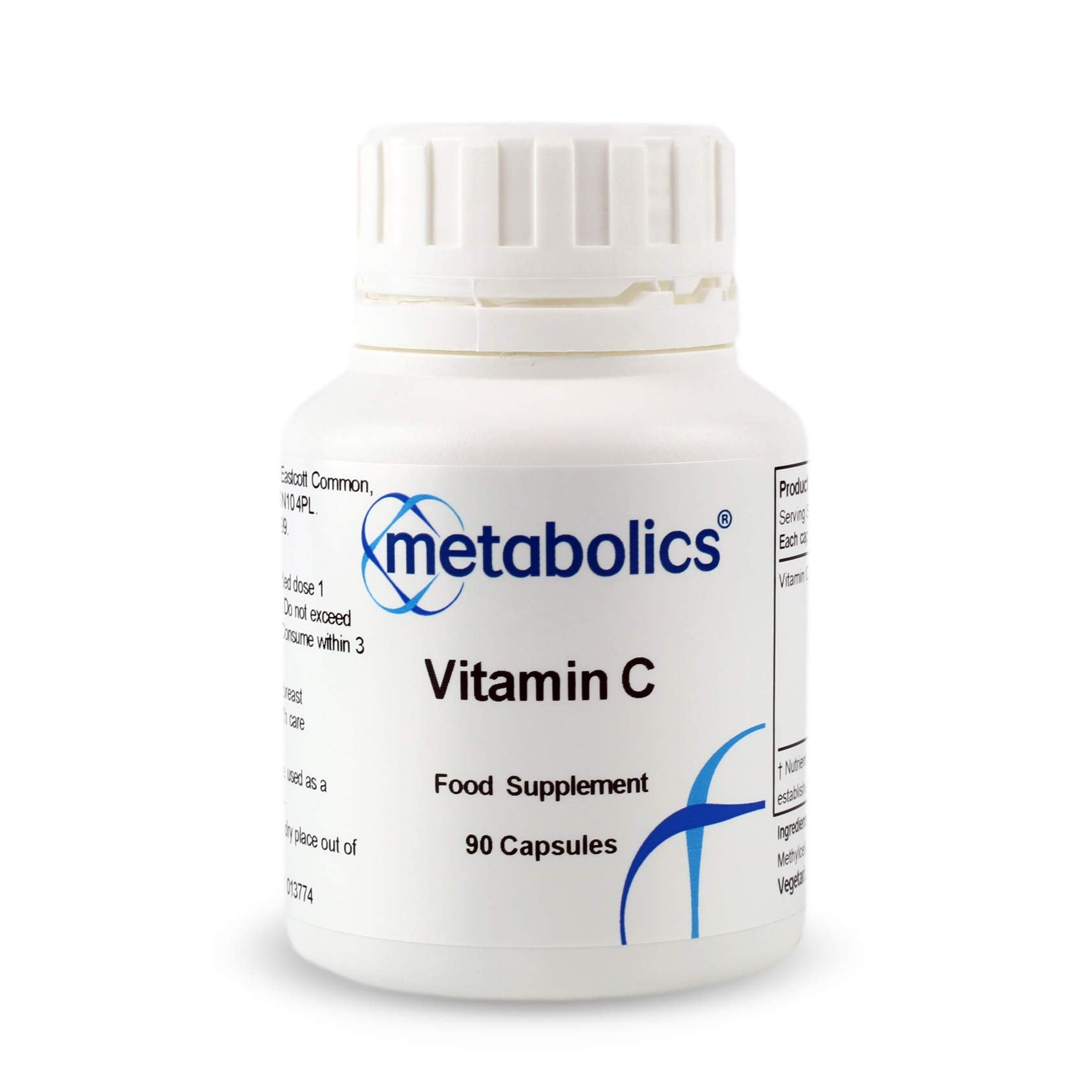Vitamin C Capsules by Metabolics | 500mg Vitamin C Per Capsule Providing 625% NRV | Pot of 90 Capsules Suitable for Vegans & Vegetarians- No Additives or Flowing Agents