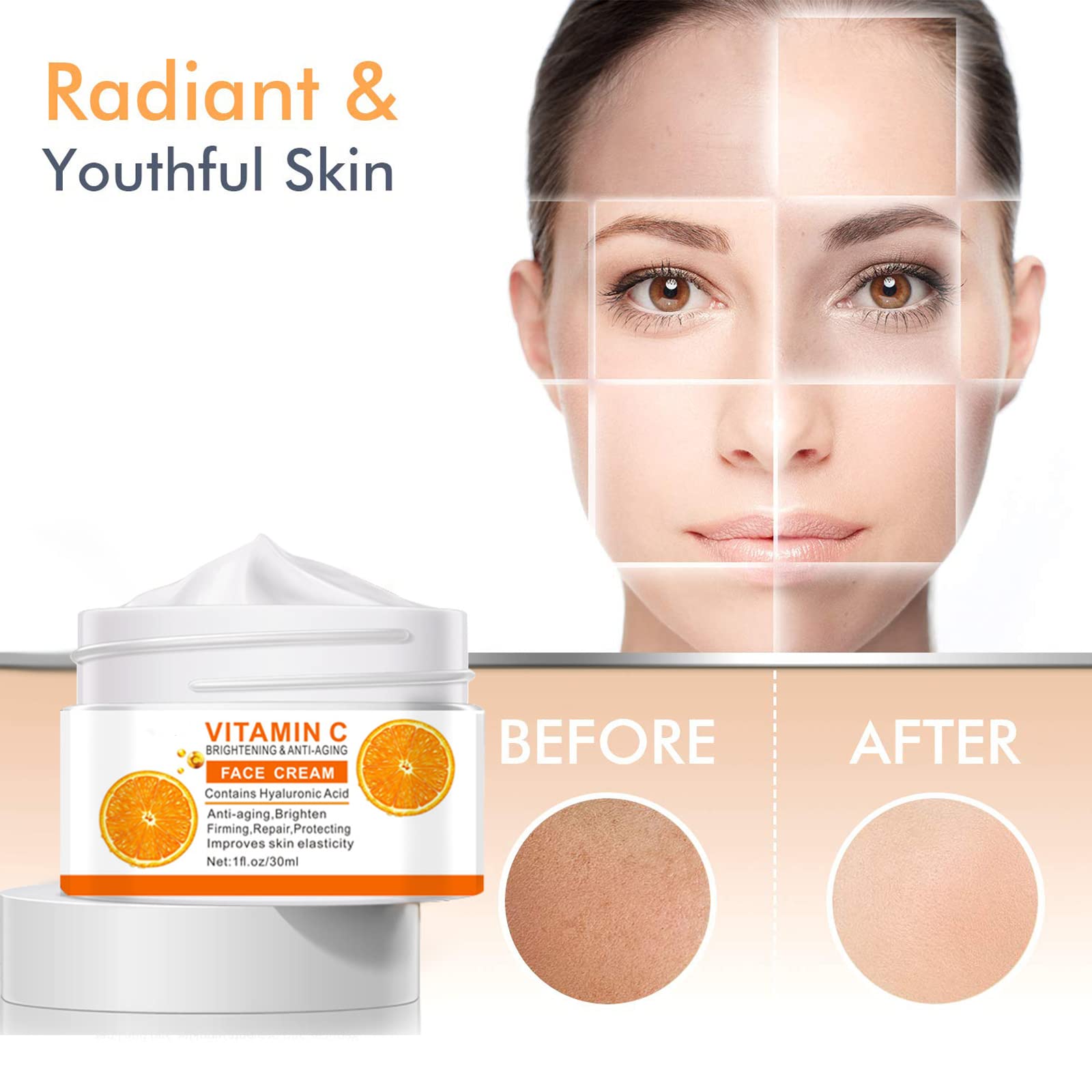 Vitamin C Face Cream, Vitamin C Cream with Hyaluronic Acid & Vitamin E, Anti Aging Vit C Serum Day & Night Face Cream for Women and Men, Boost Skin Collagen, Brighten Hydrate and Plump Skin