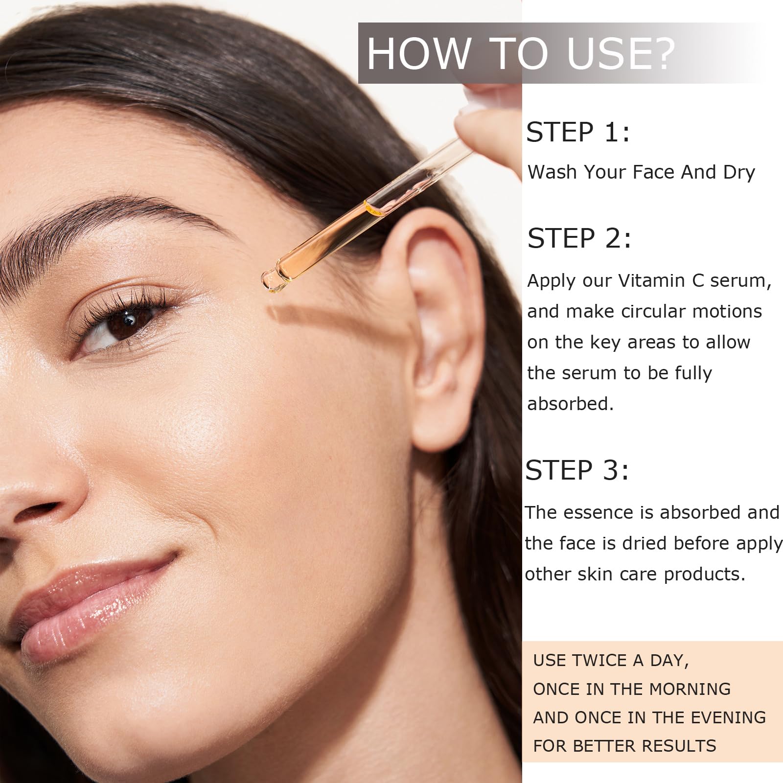 Vitamin C Serum For Face, 20% Vitamin C Serum With Hyaluronic Acid For Collagen Boost, Anti-Wrinkle,Anti-Aging,Dark Circle,Sun Damage,Brighten Hydrate Face Serum
