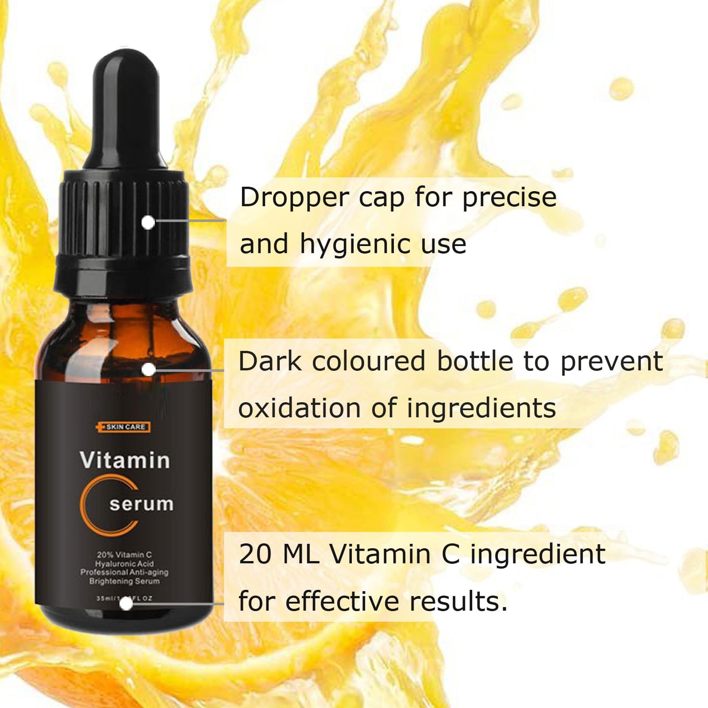 Vitamin C Serum For Face, 20% Vitamin C Serum With Hyaluronic Acid For Collagen Boost, Anti-Wrinkle,Anti-