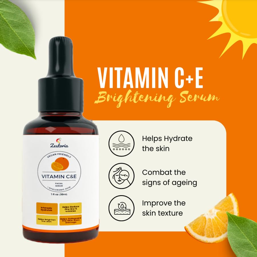 Zestoria Vitamin c serum for face: Your Secret to Radiant Skin Description: Unveil a brighter, more youthful complexion with Zestoria Vitamin C Face Serum. Our expertly formulated serum combines the power of Vitamin C with hydrating Hyaluronic Acid, creating a potent blend that not only nourishes but rejuvenates your skin. Key Features: Brightening Vitamin C: Known for its ability to reduce dark spots and even out skin tone, Vitamin C is a powerhouse in skin rejuvenation. It helps protect against environmental stressors, leaving your skin looking brighter and more vibrant. Hydrating Hyaluronic Acid: This wonder ingredient deeply hydrates, locking in moisture to give your skin a plump, youthful glow. It helps diminish fine lines, leaving your skin feeling smooth and supple. Gentle Yet Effective: Our serum is formulated to be kind to your skin. It’s suitable for all skin types, including sensitive skin. The lightweight, non-greasy formula absorbs quickly, making it perfect for daily use. Free from Harsh Chemicals: We pride ourselves on our commitment to natural beauty solutions. Zestoria’s serum is free from parabens, sulfates, and artificial fragrances. How to Use: For best results, apply a small amount of Zestoria Vitamin C Face Serum to your face and neck after cleansing and toning. Gently massage in circular motions until fully absorbed. Use morning and night for a bright, radiant complexion. Why Choose Zestoria? At Zestoria, we believe in the power of nature to bring out the best in your skin. Our products are carefully crafted with high-quality ingredients to provide you with safe, effective skincare solutions. Embrace the Zestoria glow and step into a world of radiant beauty.More Info
