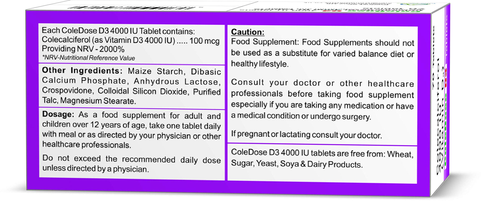 - SUNSHINE VITAMIN: Because natural food sources of vitamin D are rare, the ColeDose D3 Tablet is a food supplement that provides a source of Colecalciferol as Vitamin D3.Vitamin D3 is the form of vitamin D that is made in the body and therefore is far easier to absorb and retain than other forms.