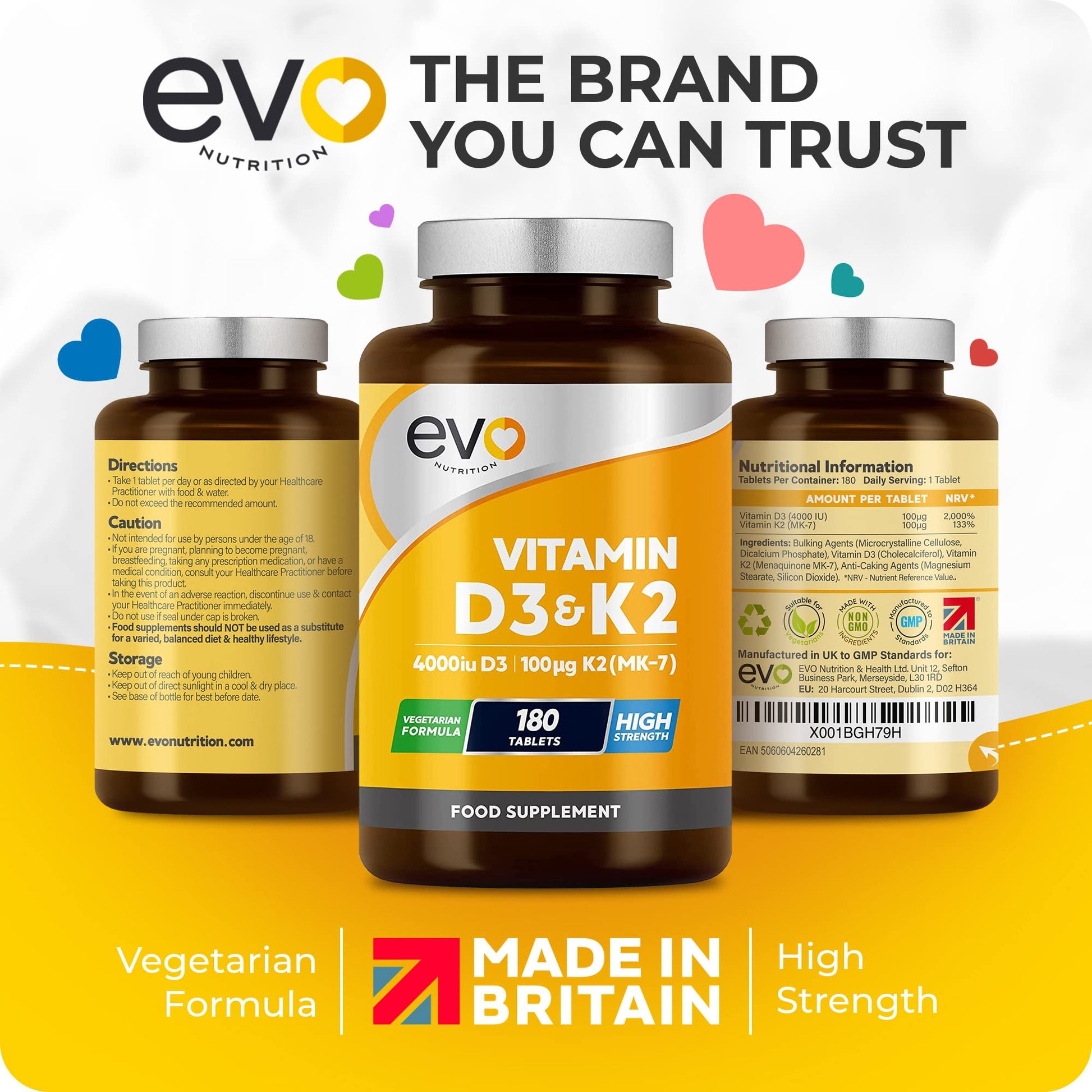 Vitamin D3 4000iu & Vitamin K2 100ug (MK7) |180 Vegetarian Tablets | 1-A-Day | 6 Month Supply | High Strength D3 and K2 Vitamin | Vitamin D K2 Supplement | Made in The UK