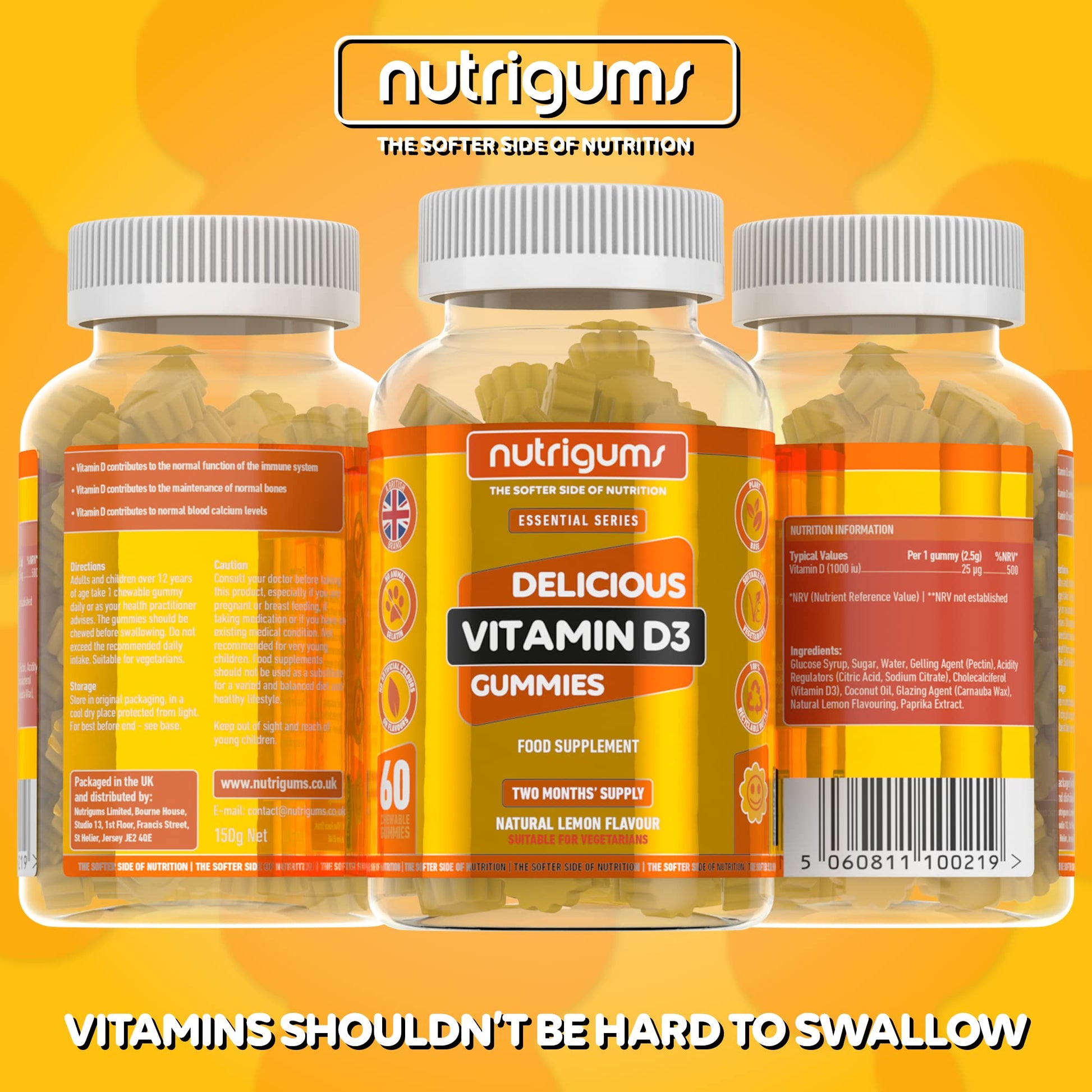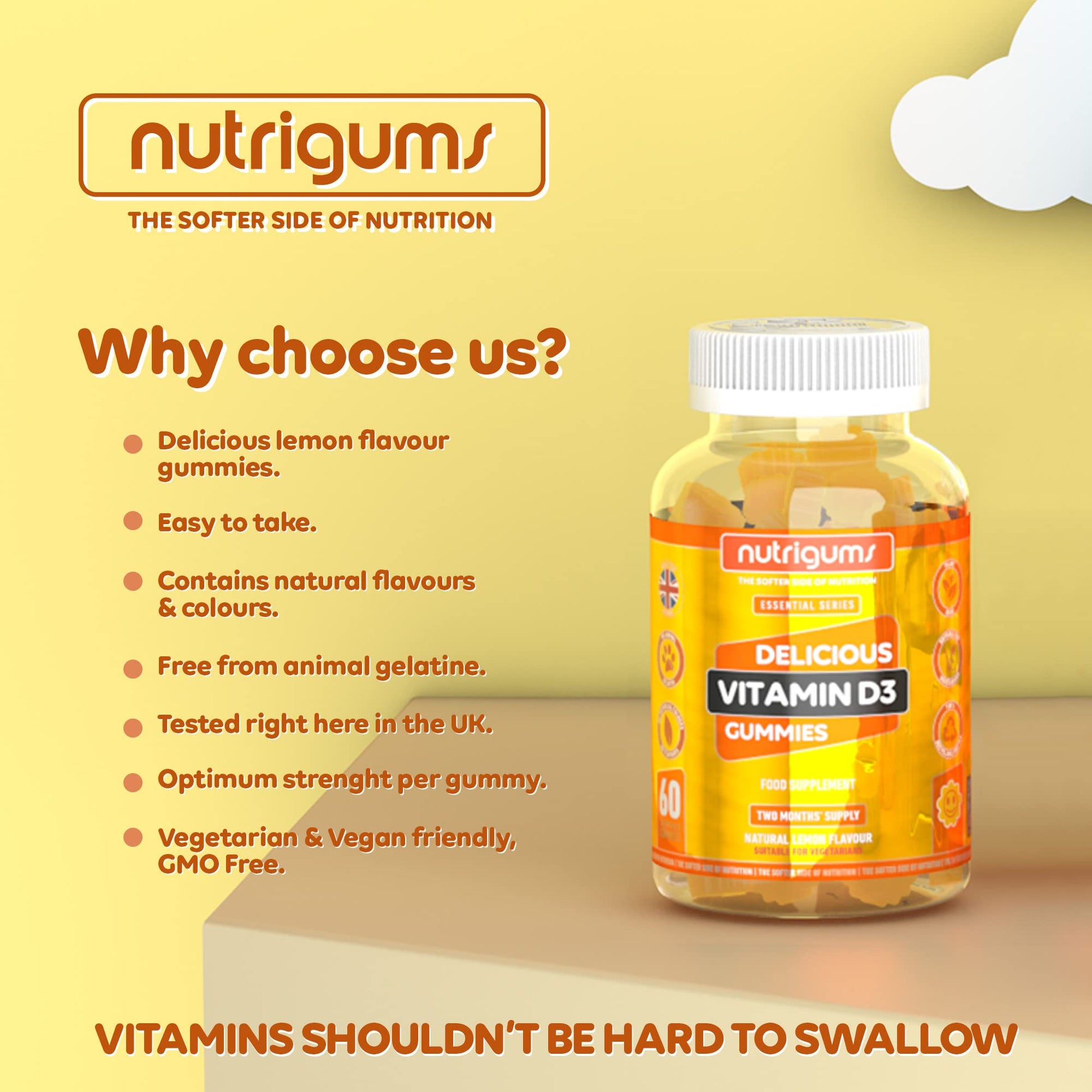 - NUTRIGUMS SUNSHINE VITAMIN D3 GUMMIES – Our Vitamin D3 lemon-flavoured and sunshine-shaped gummies provide a delicious and convenient way to include the superb qualities of Vitamin D3.