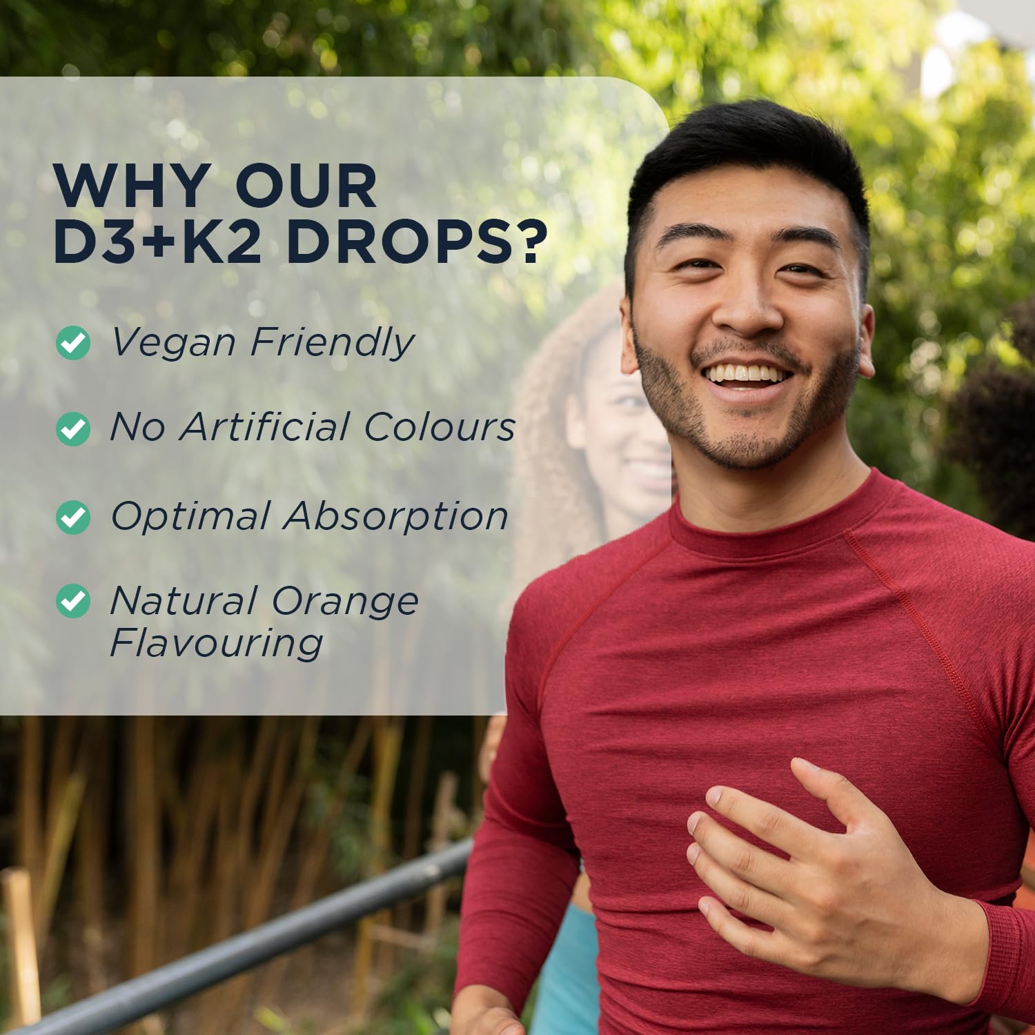 - ENJOY A NATURAL ORANGE FLAVOUR: Vitamin K2 works synergistically with D3 to support bone and teeth health, among other benefits. The Core Vitamin D3 + K2 liquid drops contain a natural orange flavour to encourage positive daily use.