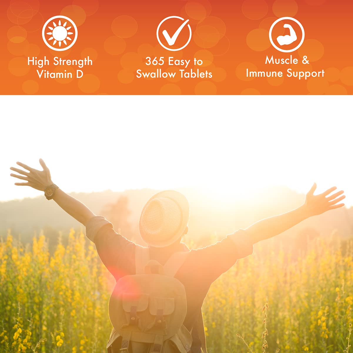 Vitamin D3 Tablets - Maximum High Strength D3 4000IU - One a Day - 365 Days Supply, Easy to Swallow (Adults D3 Tablets) by Sunshine Nutrition. Made in UK.