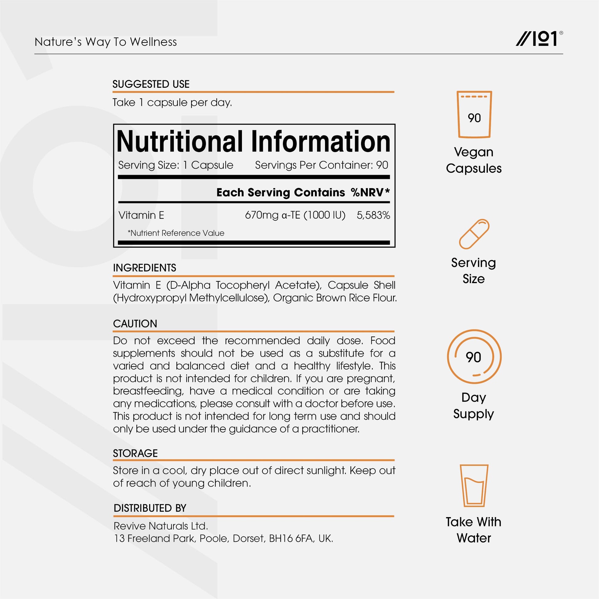 Vitamin E 1000IU D-Alpha Tocopherol – 100% Natural Vitamin E – 90 Vegan Capsules – Highly Absorbable – 3 Month Supply – Protects Cells from Oxidative Stress – by Alpha01