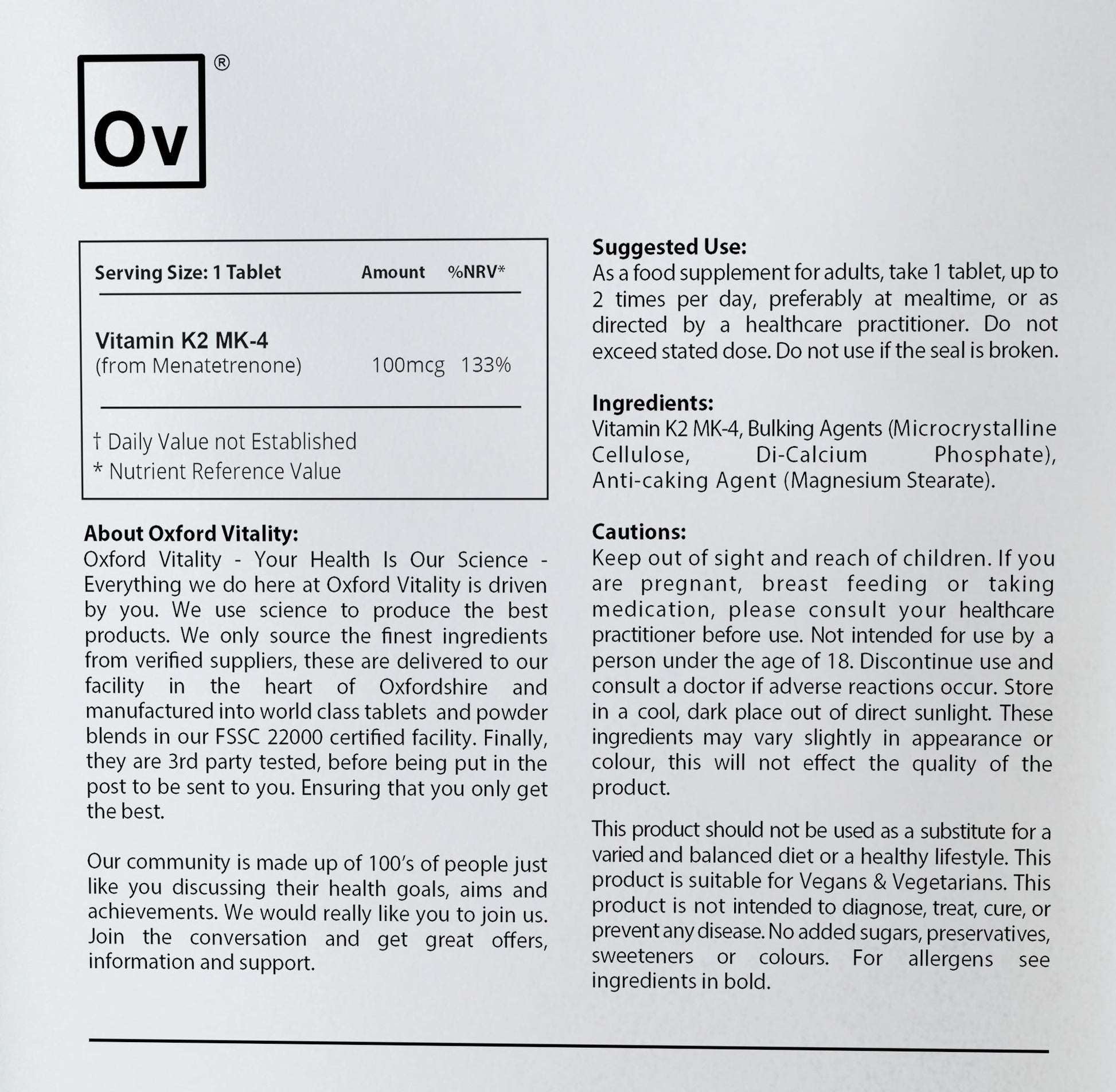 Vitamin K2 MK-4 Tablets | 100mcg Supplement for Blood & Bone Health | Oxford Vitality