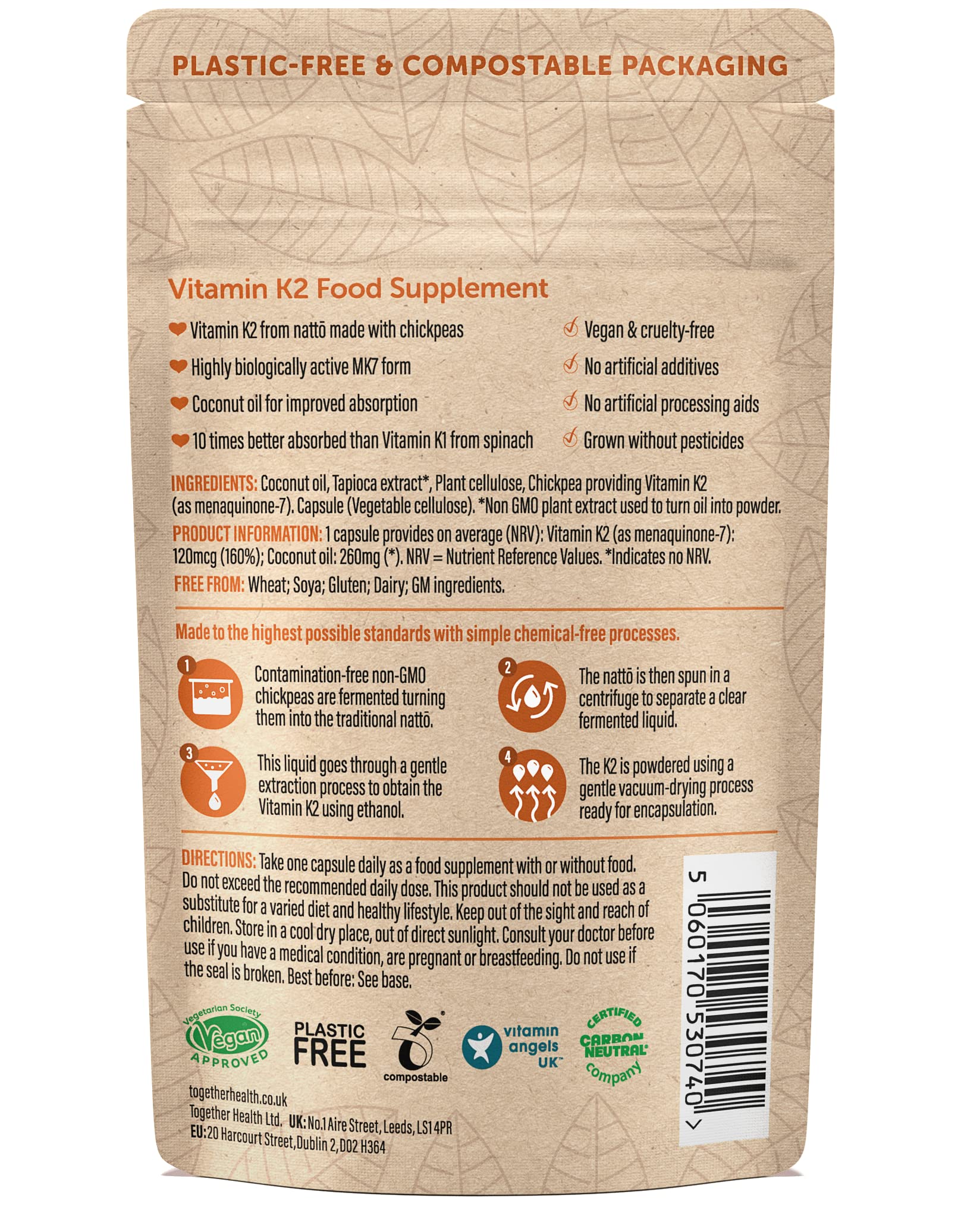 Vitamin K2 – Together Health – Vitamin K2 from Fermented Chickpeas – Highly Biologically Active MK7 Form – Vegan Friendly – Made in The UK – 90 Vegecaps