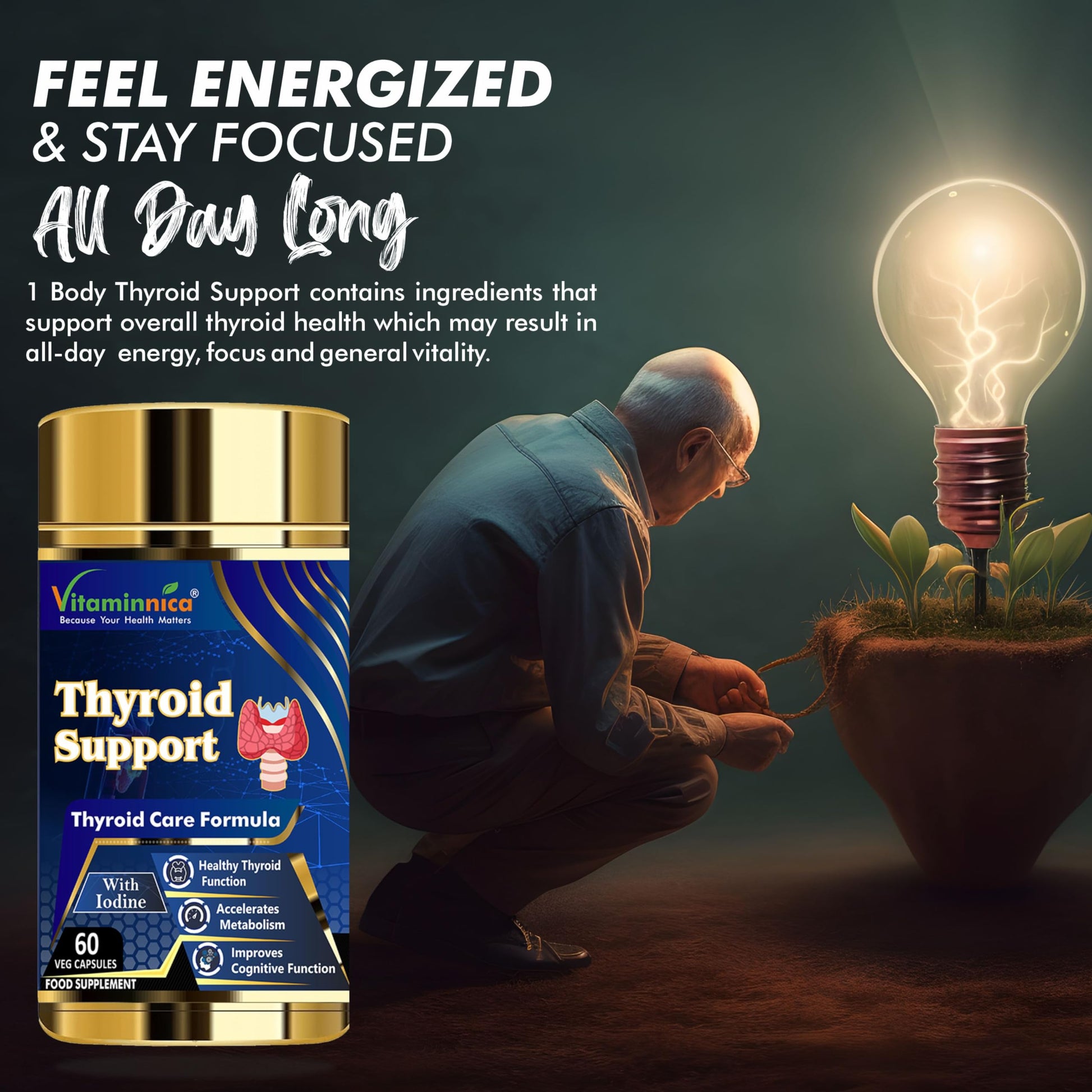 Vitaminnica Because your Health Matters Vitaminnica Thyroid Support - Supplement for Women and Men - Energy & Focus Formula - Vegetarian & Non-GMO - Iodine, Vitamin D3 Complex, Zinc, Selenium, Ashwagandha, Copper- 2 Months Supply