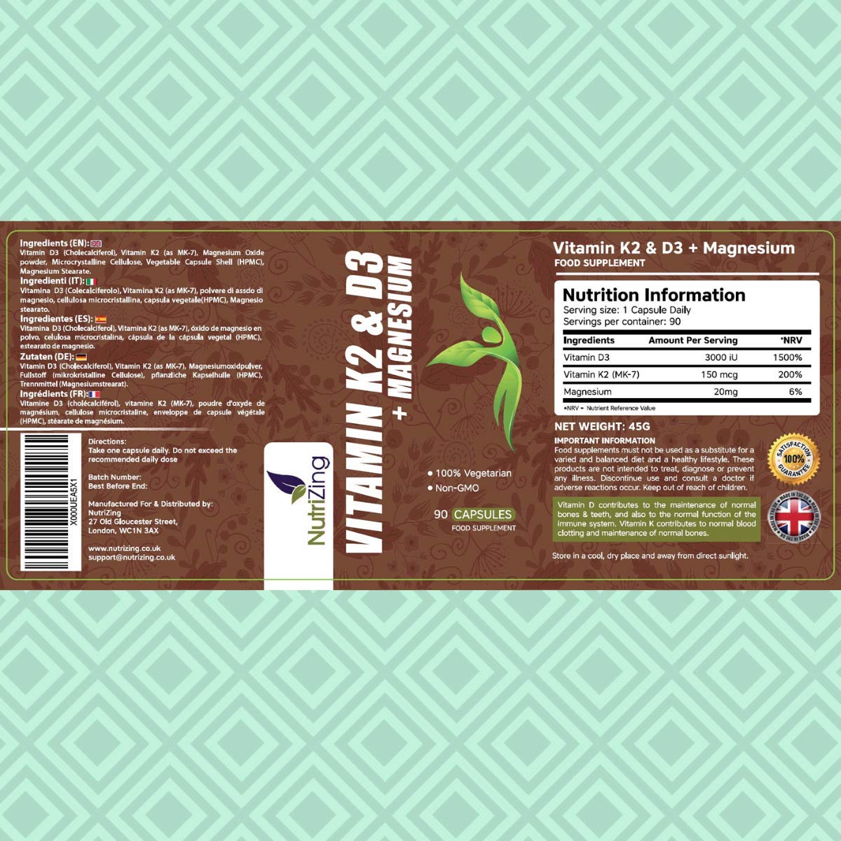 - HIGH STRENGTH: The Vitamin K is Natto based 150mcg MK7, the vitamin D is 3000 IU cholecalciferol and there's also an additional 20mg Magnesium. We use only MK-7 form of vitamin K, than MK-4