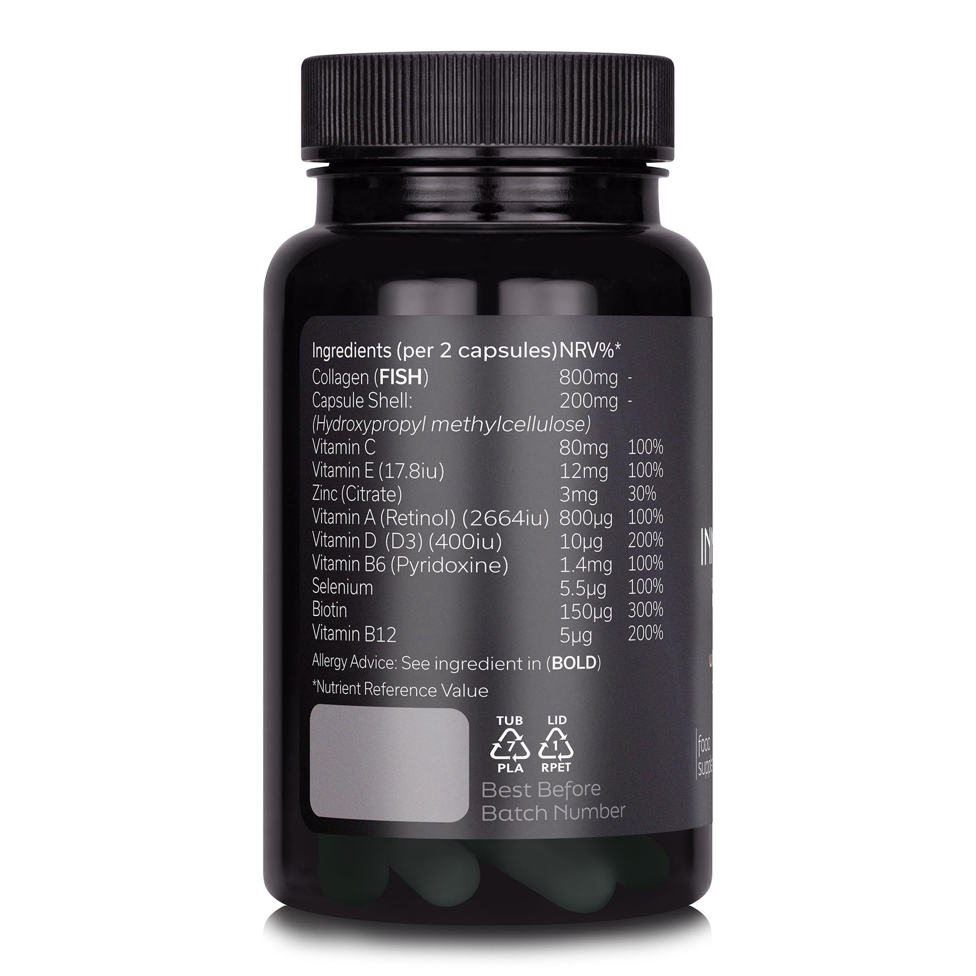 Discover how this proven collagen makes you feel and look younger, while also boosting energy, balance, and strength, enhancing your natural appearance. Suitable for Women and Men alike: 🌿 Say Hello to your ultimate vitamin blend that will fulfill all your body needs with only two capsules a day! 🌿 Welcome to a journey of radiance and well-being with our exclusive Inner Beauty Vitamins. 🌿Unveil the secrets to timeless beauty from within with our meticulously crafted blend of marine collagen, biotin, and retinol. 🌿Embrace the traditions of Moroccan culture, where each capsule is pharmacist-made to perfection. Made in the U.K. and passed UK GMP standard food supplements quality checks. 🌿 Elevate your self-care routine and unlock your inner beauty with our exclusive blend of vitamins. 🌿 Embrace the beauty of simplicity, embrace Inner Beauty Vitamins. 🌿 Your journey to radiant well-being starts here. Take 2 capsules with a main meal or as directed by a healthcare professional. WARNING: Do not exceed recommended dose. A food supplement should not be used as a substitute for a healthy diet. This product contains vitamin A. Use with sunscreen when exposed to sunlight. Do not use if you are pregnant or may become pregnant unless advised by a doctor or antenatal clinic. Store in a cool, dry place out of reach and sight of children.More Info