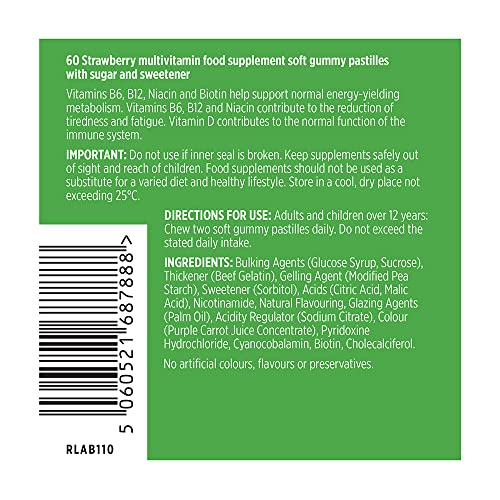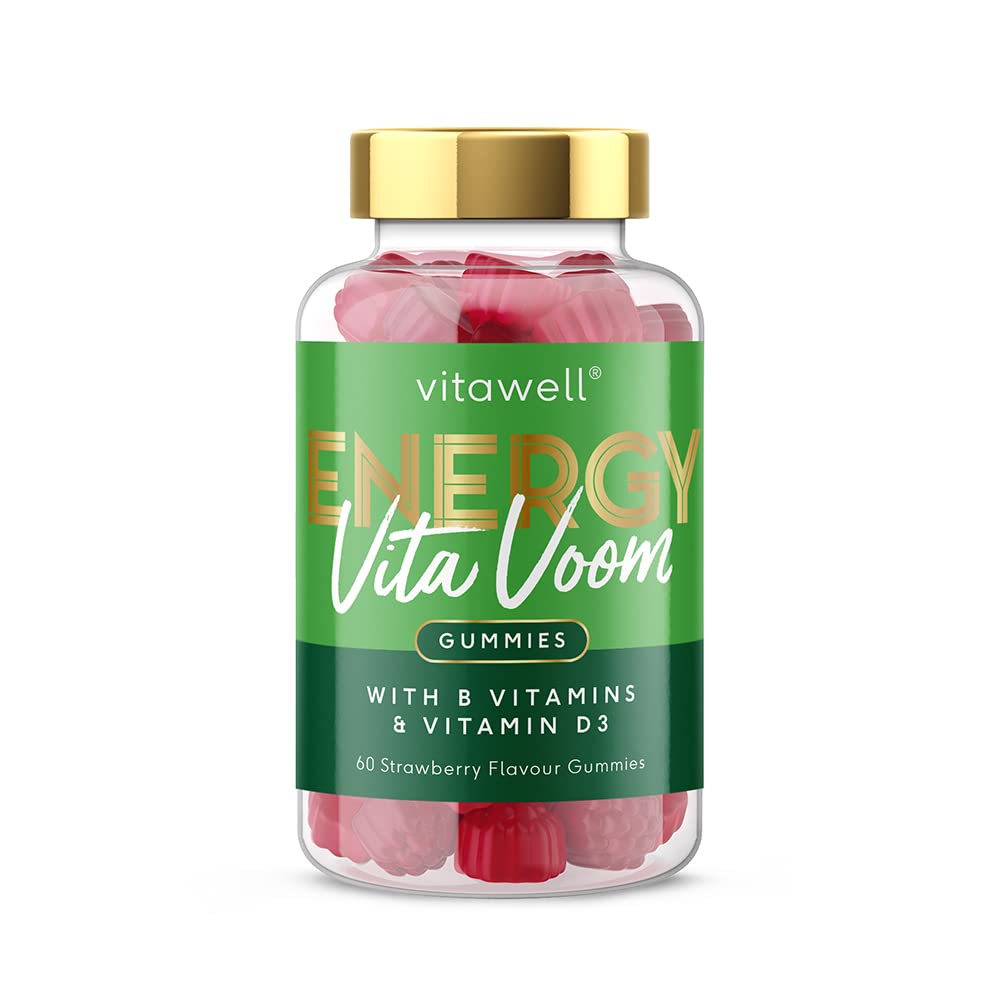 Vitawell Energy Vita Voom Gummies | 60 Strawberry Flavour | 2 a Day Chewable Vitamins | Vitamins B6, B12 and Niacin Contribute to The Reduction of Tiredness & Fatigue | 1 Month Supply | by Vitawell