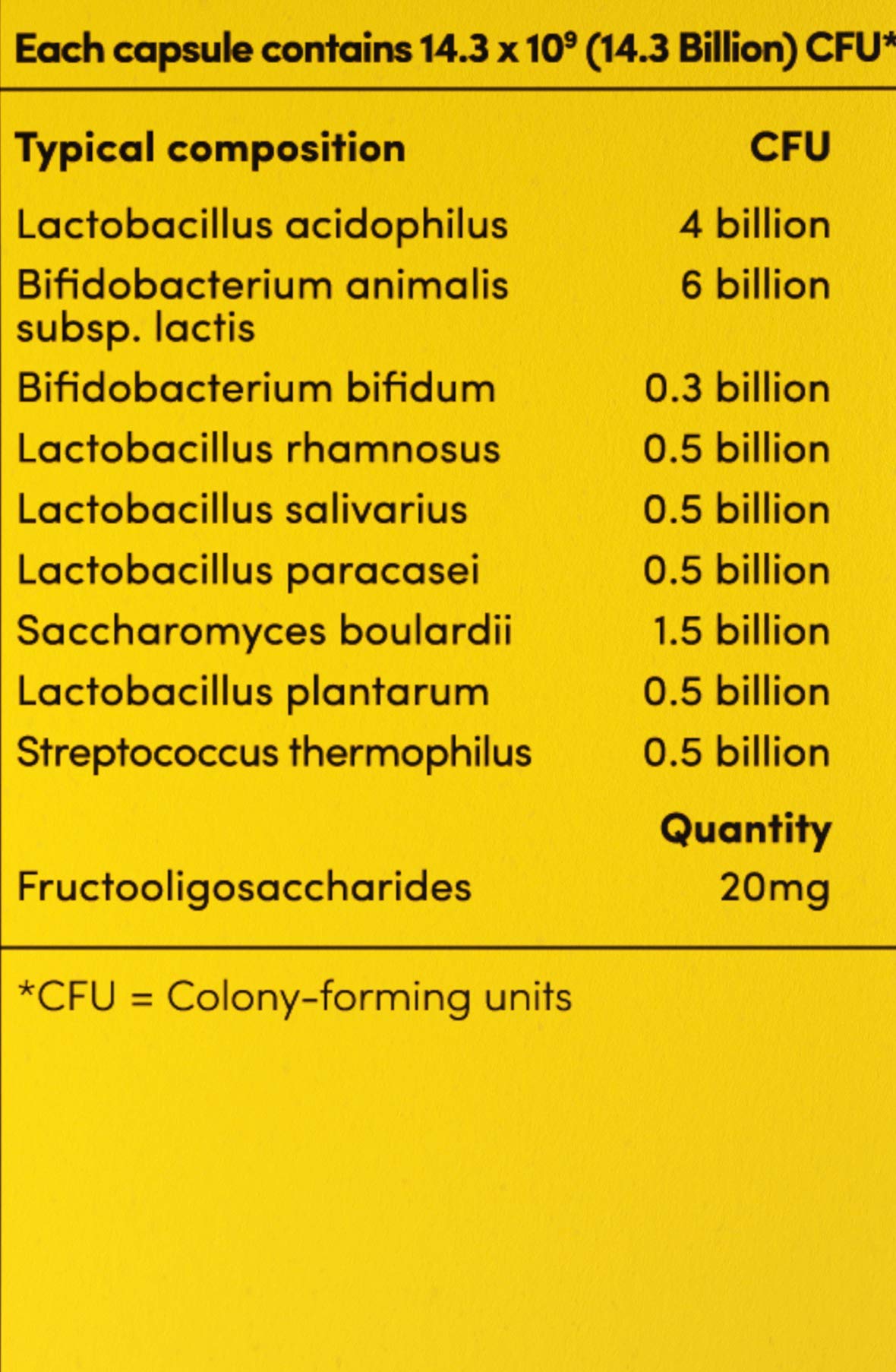 - POWERFUL FORMULA: Packed with over 14 billion colony-forming probiotics. Lactobacillus Acidophilus helps the digestive system break down sugars. Bifidobacterium helps relieve constipation, improving bowel regularity.