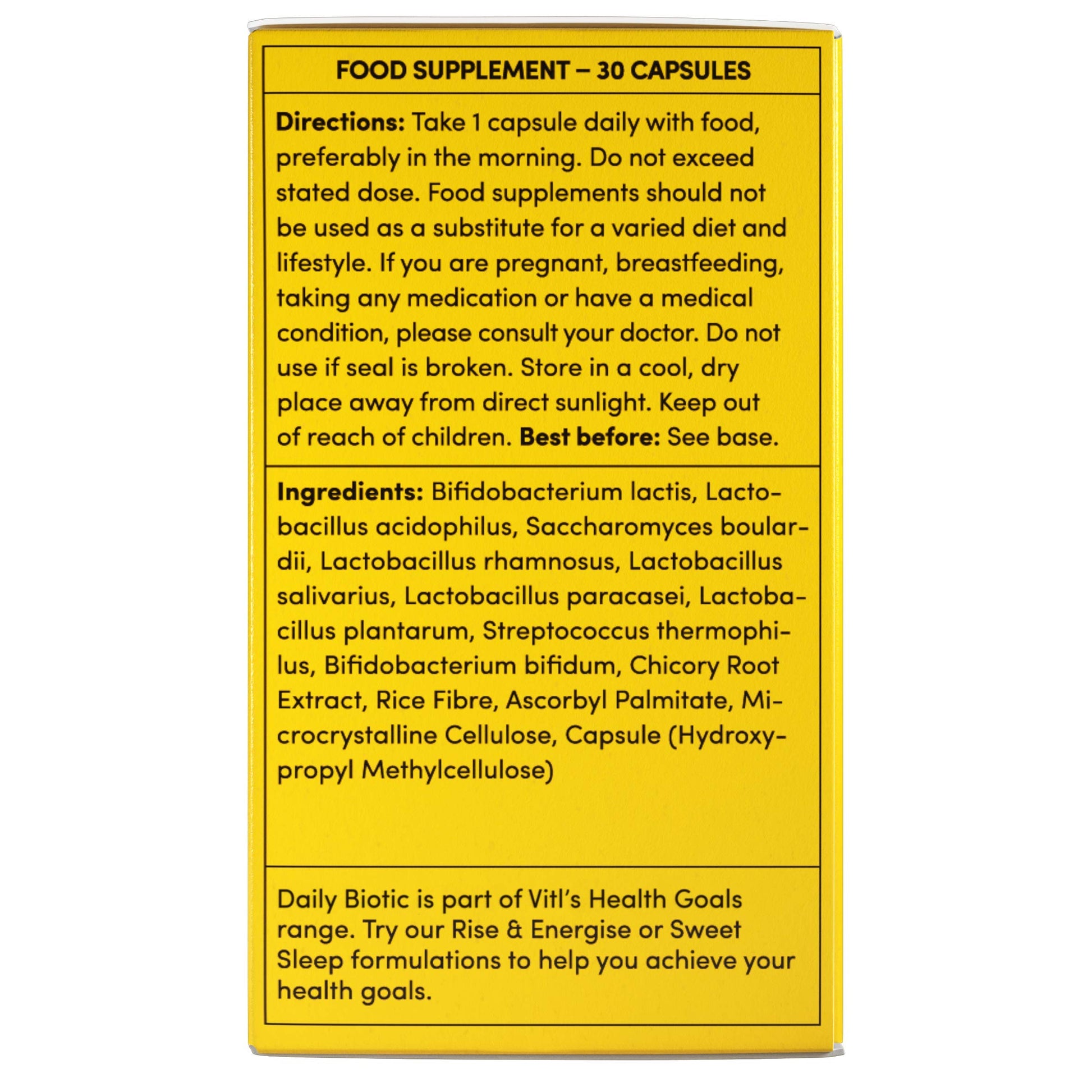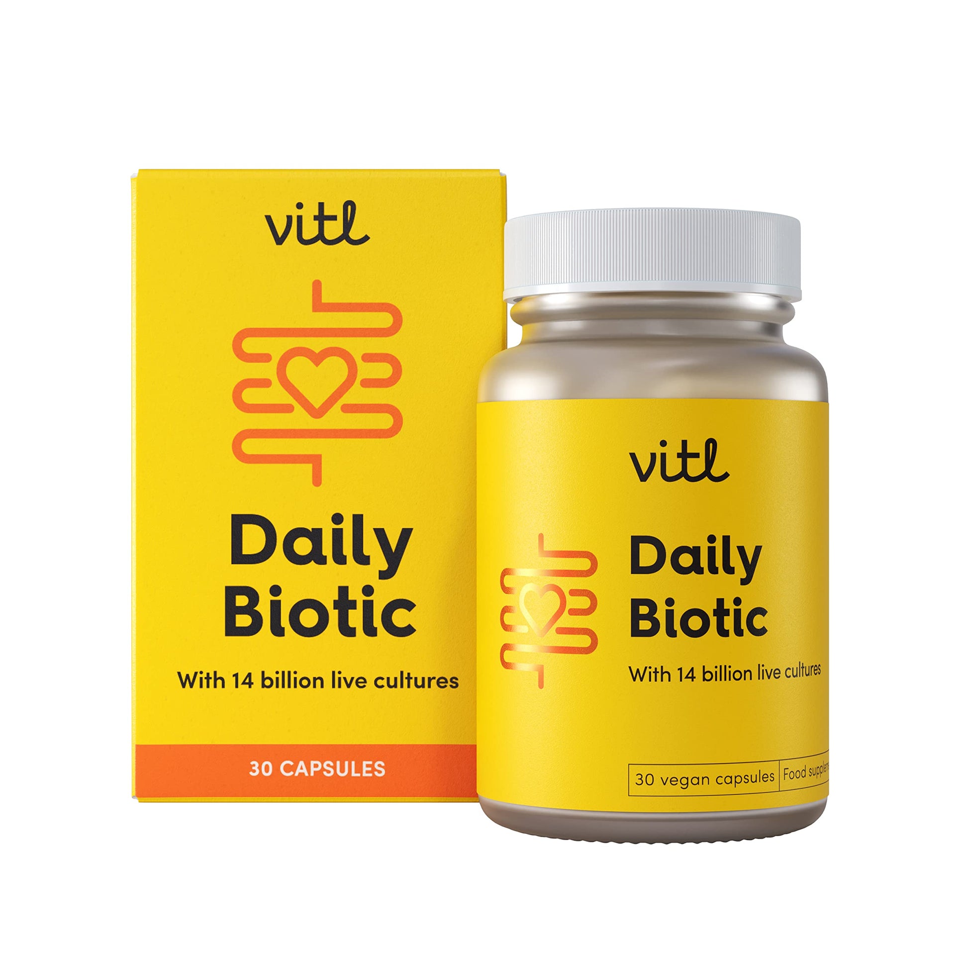 Vitl Daily Biotic with 9 Probiotic Strains - 30 Vegan Capsules - Probiotic with a Complex Blend of Gut Friendly Bacteria - Restore Balance in The Gut & Aid Digestion - 1 Month Supply
