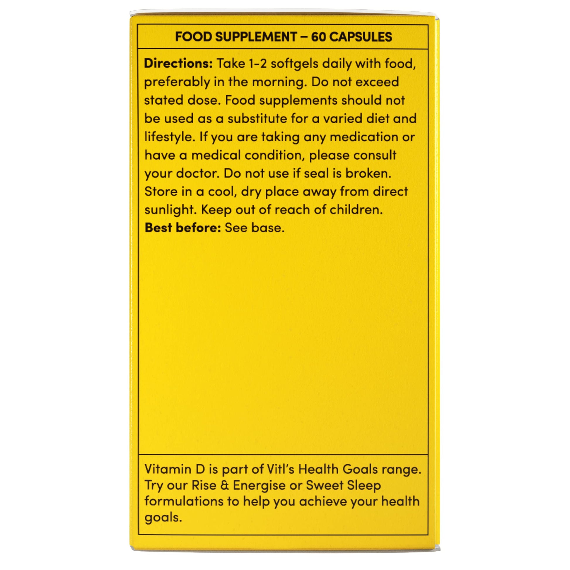 Vitl Vitamin D3 Supplement - 60 Vegan Softgel Capsules - Support for The Immune System, Bones & Joints, Teeth, Muscles and Heart - 2 Month Supply