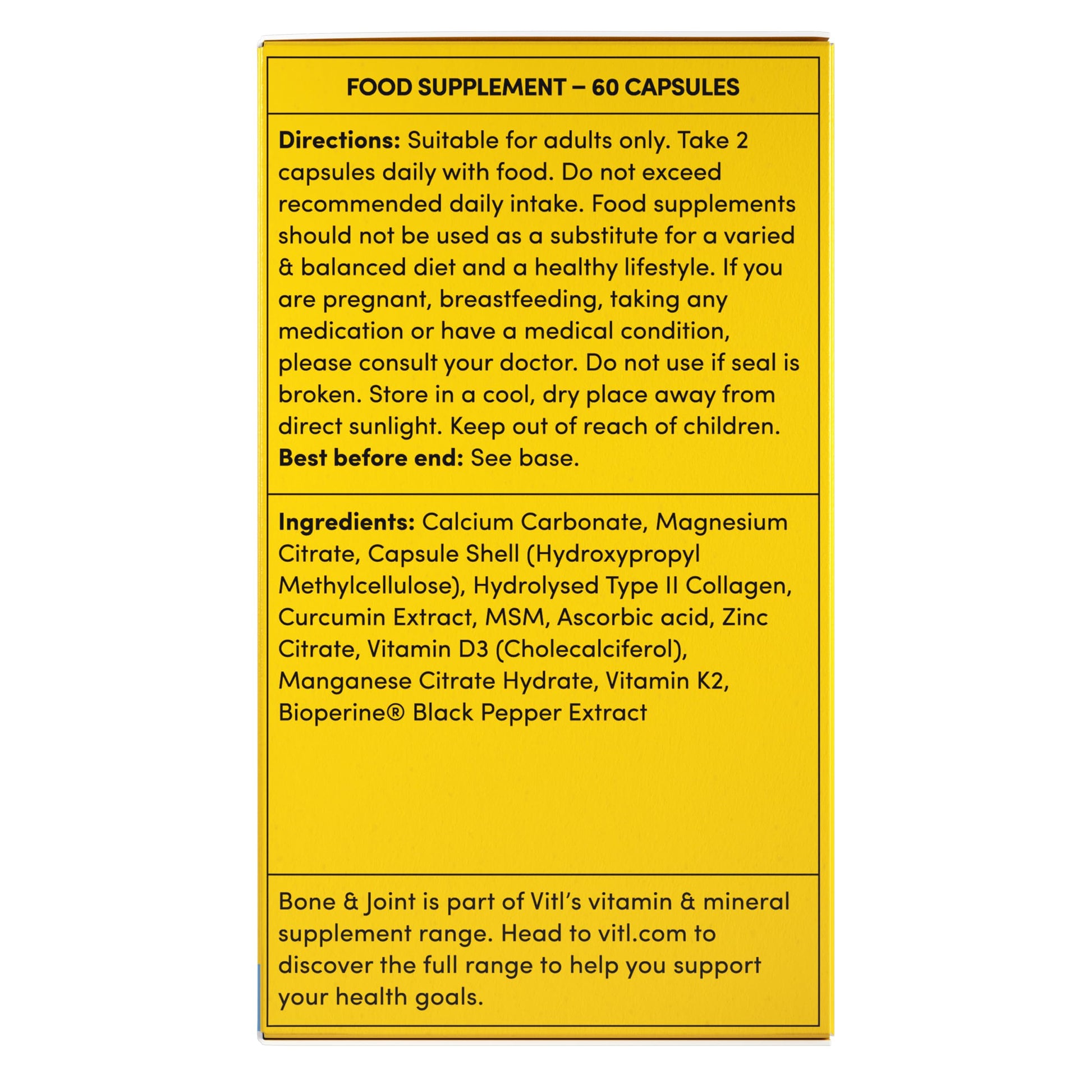 VITL Vitl Bone & Joint Supplement - 60 Capsules - with Calcium, Manganese, Hydrolysed Type II Collagen & Turmeric - Maintenance for Joints, Bones & Cartilage - Support Mobility & Flexibility
