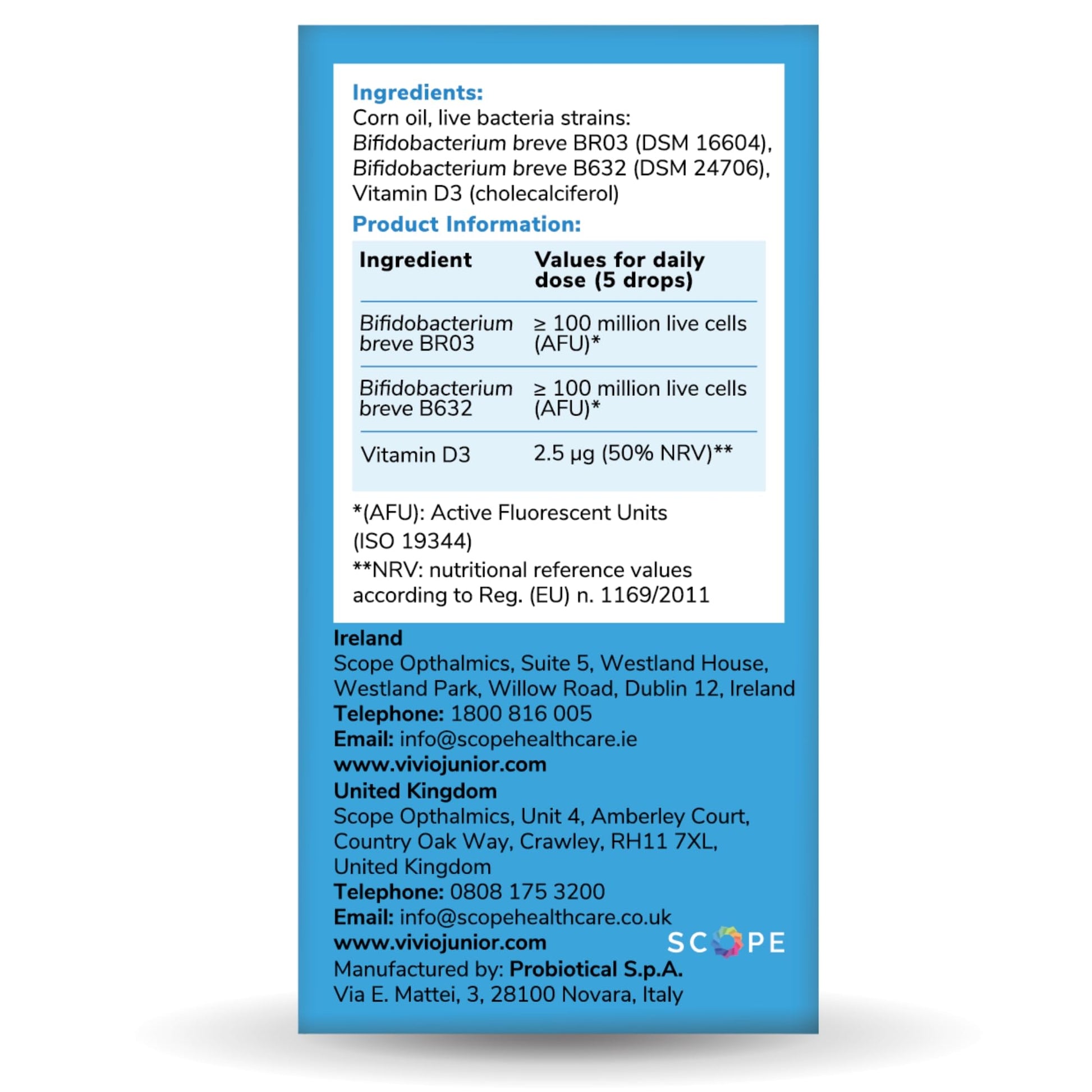 VIVIO JUNIOR Vivio Junior Tummies Bifibaby Drops - A Probiotic & Vitamin D3 Supplement for Babies & Children with Live Bacteria Strains to Support Gut Health and Immunity - 30 Day Supply
