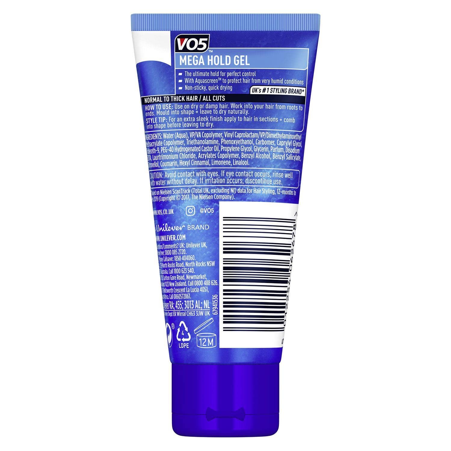 - The VO5 Mega Hold Styling Gel offers 24hr extra strong control ideal to create indestructible looks