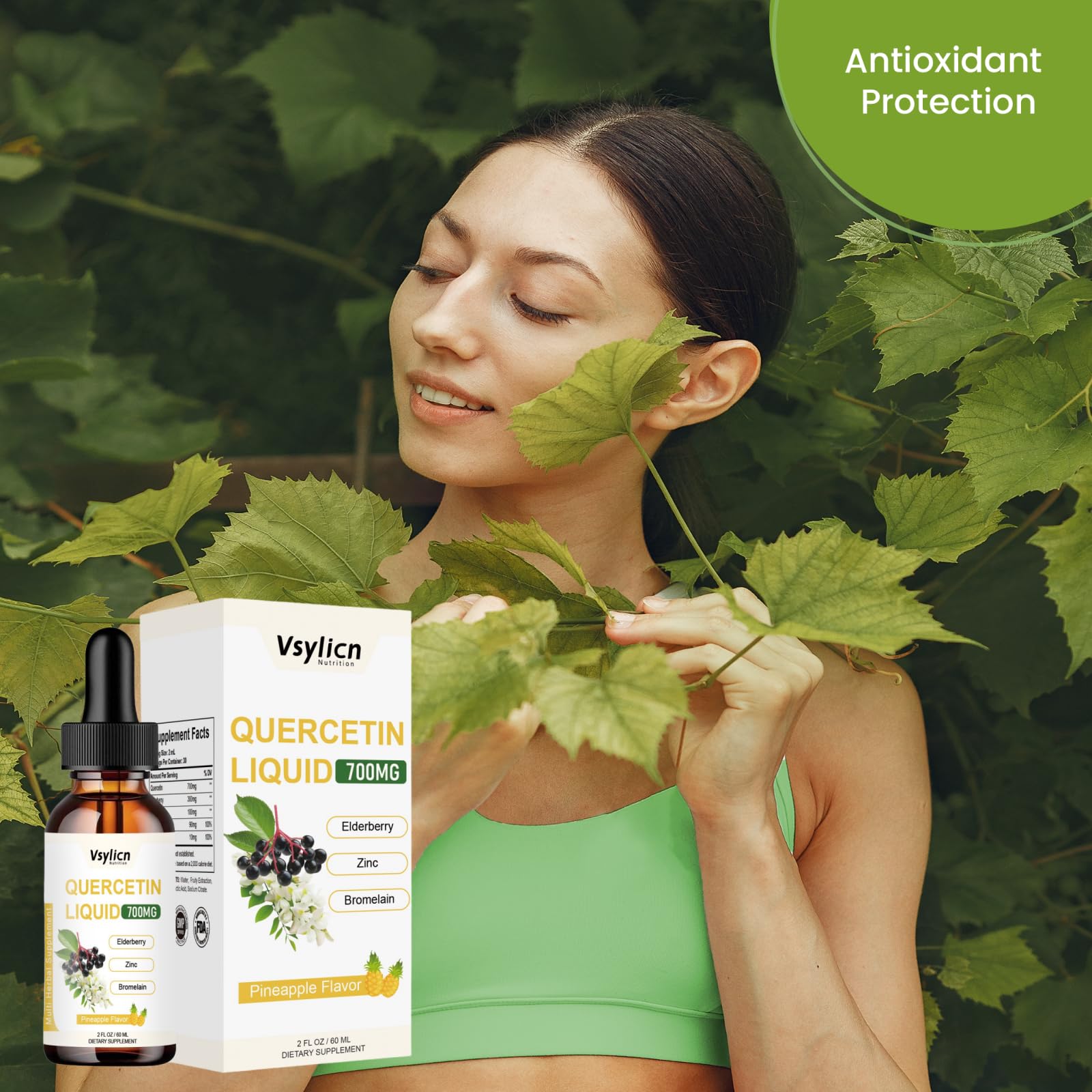 VSYLICN 700mg Quercetin Liquid Drops - Quercetin Bromelain Supplements - 5 in 1 with Bromelain Elderberry Vitamin - 4X Stronger Than Pills & Capsules - Immunity Health Respiratory Health Skin Care - 60ml