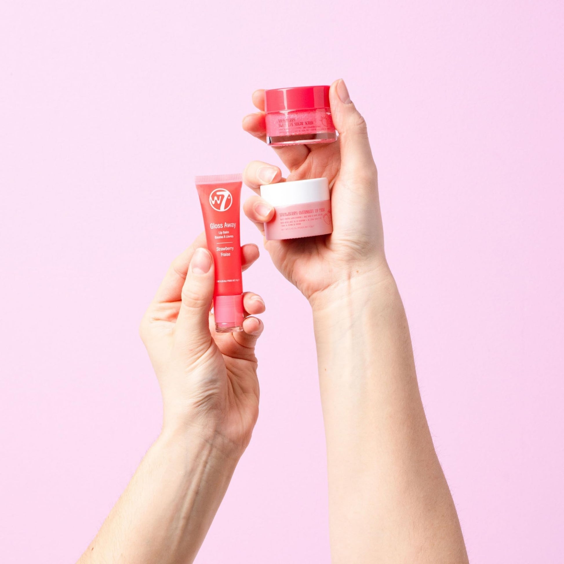 W7 Sweet Dreams Lip Care Trio - 3 Piece Set - Overnight Lip Mask, Lip Balm & Lip Scrub - Strawberry