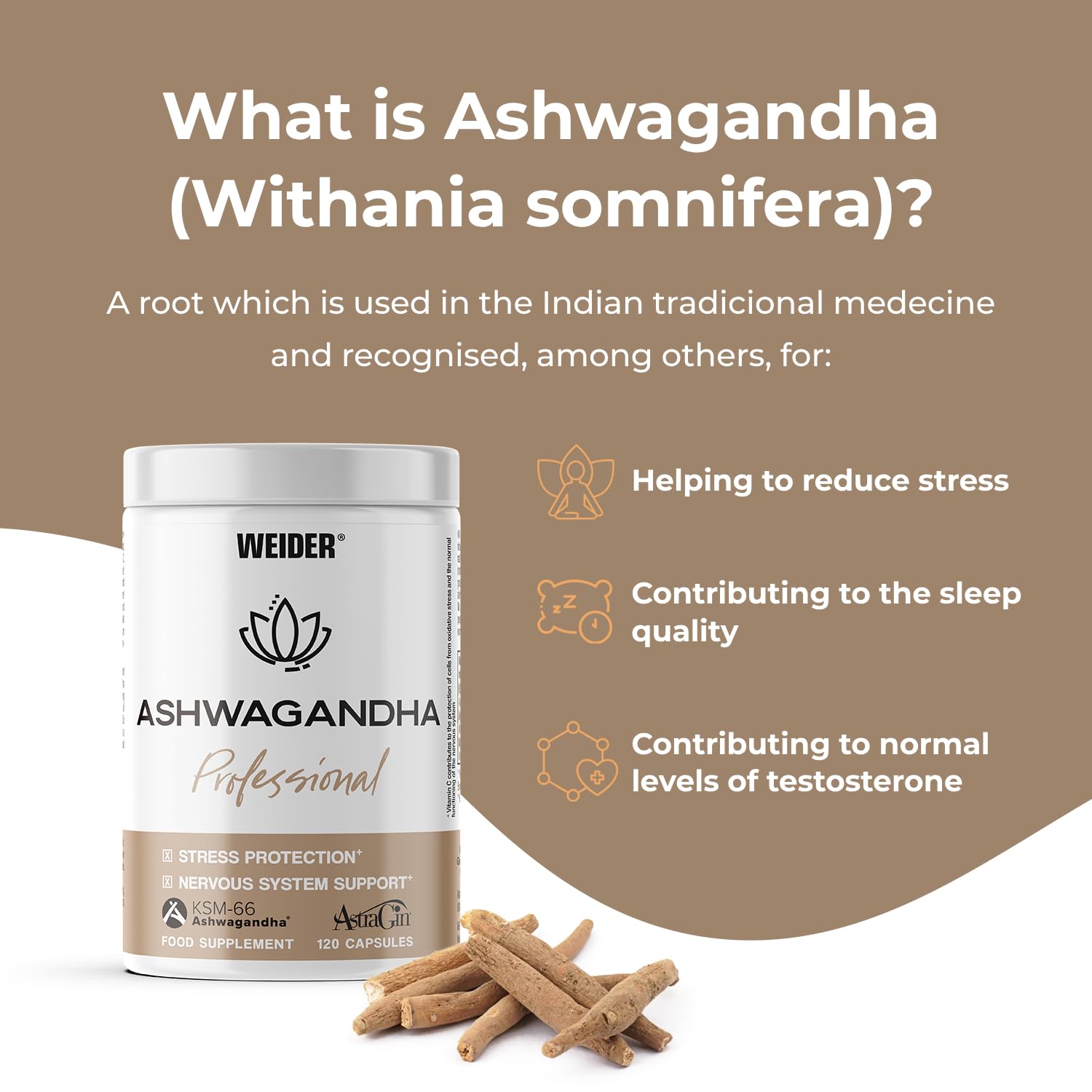- ASHWAGANDHA PROFESSIONAL by Weider, an international company pioneer and specialised in sports nutrition with over 85 years of experience offering quality and innovation.