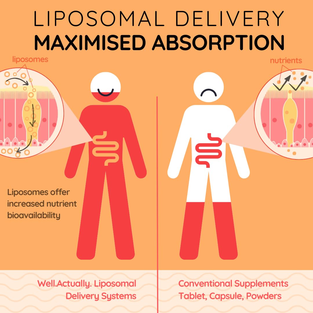 Elevate your wellness journey with Well.Actually. High-Strength Liposomal Vitamin C 1000mg (5 Sachet Pack), proudly made in the UK. Unveil a new level of vitality as this powerhouse supplement ignites your body's potential, supporting immune function, collagen production, and energy levels. Our Premium Quality formula is encapsulated within millions of micro-phospholipid Liposome bubbles, made from the same membrane structure that surrounds our own cells and which the body easily recognises and absorbs more easily. Liposomes protect Vitamin C against harsh digestive processes. This ensures more intact Vitamin C makes it into the small intestine enabling higher levels of vitamin C to be absorbed compared to powder, tablet or capsule forms. With its ‘Orange Twist’ flavour, it tastes great straight from the sachet, or you can mix it into water, smoothies, juices or add to your cereal. Made in the UK, it is free from alcohol, artificial preservatives and sweeteners and is Non-GMO, vegan and vegetarian friendly. Embark on a journey of optimal health with Well.Actually. High-Strength Liposomal Vitamin C 1000mg (30 Sachet Pack). Our Liposomal innovation – a testament to our unwavering dedication to your well-being.More Info
