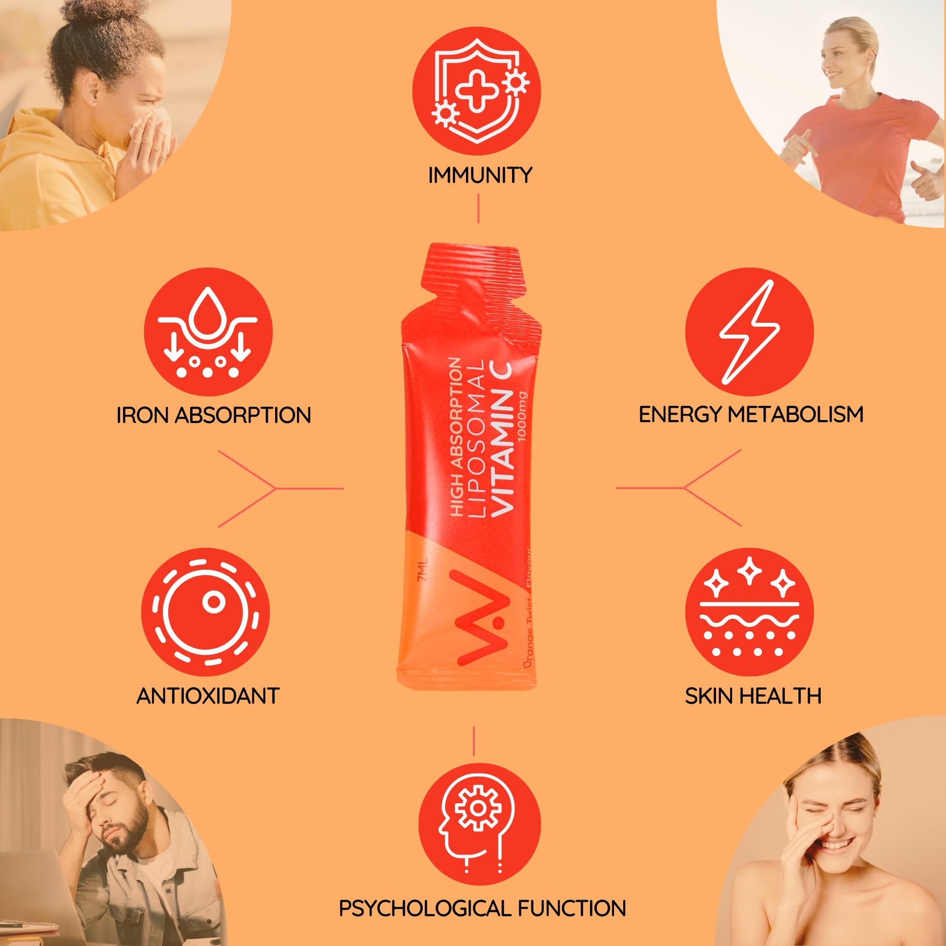 WELL ACTUALLY Liposomal Vitamin C 1000mg Sachets - High Bioavailability Liquid Vitamin C Supplement - Supports Immunity, Skin, Brain, Joints, Energy - Vegan (Packs of 5 Sachets)