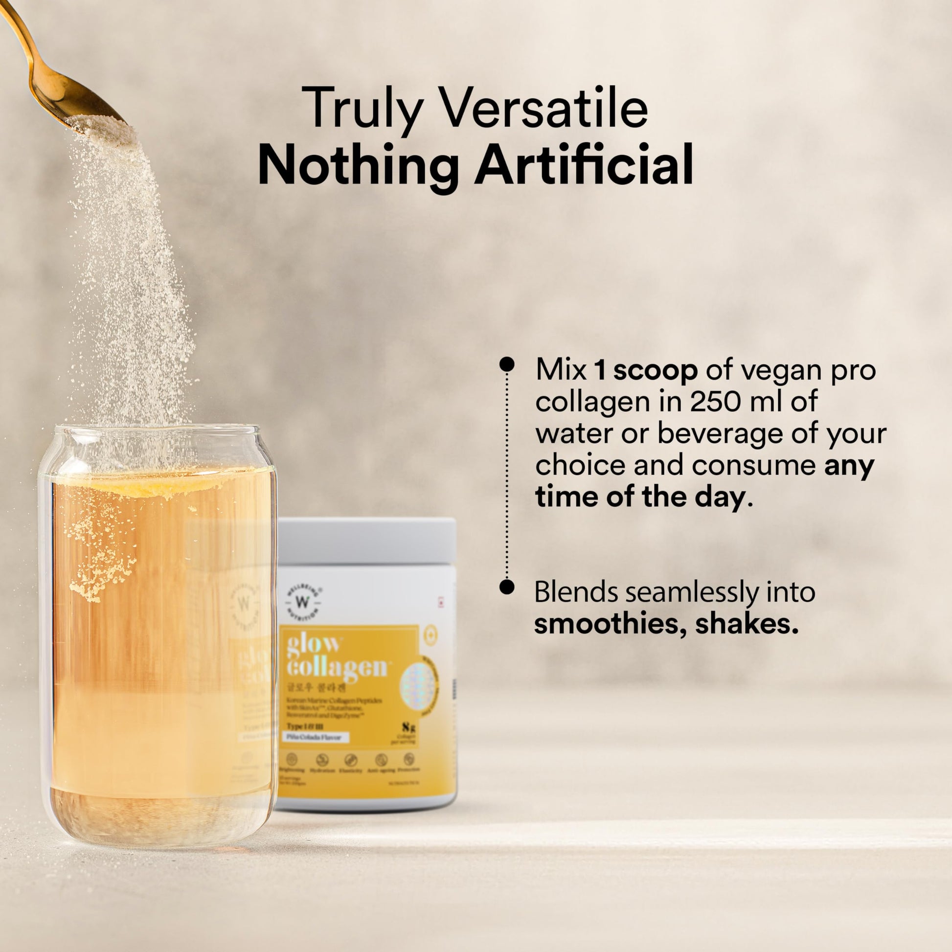 Wellbeing Nutrition Glow Collagen with Glutathione | Collagen Supplements for Women & Men | Marine Collagen Powder with SkinAx², Resveratrol, Bromelain & Goji Berry | 250g - Pina Colada Flavor