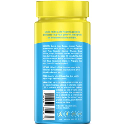 Wellgard Kids Calcium & D3 Gummies - 2 Month Supply - Vegan Chewable Calcium and Vitamin D3 Gummies, Mixed Berry Flavour