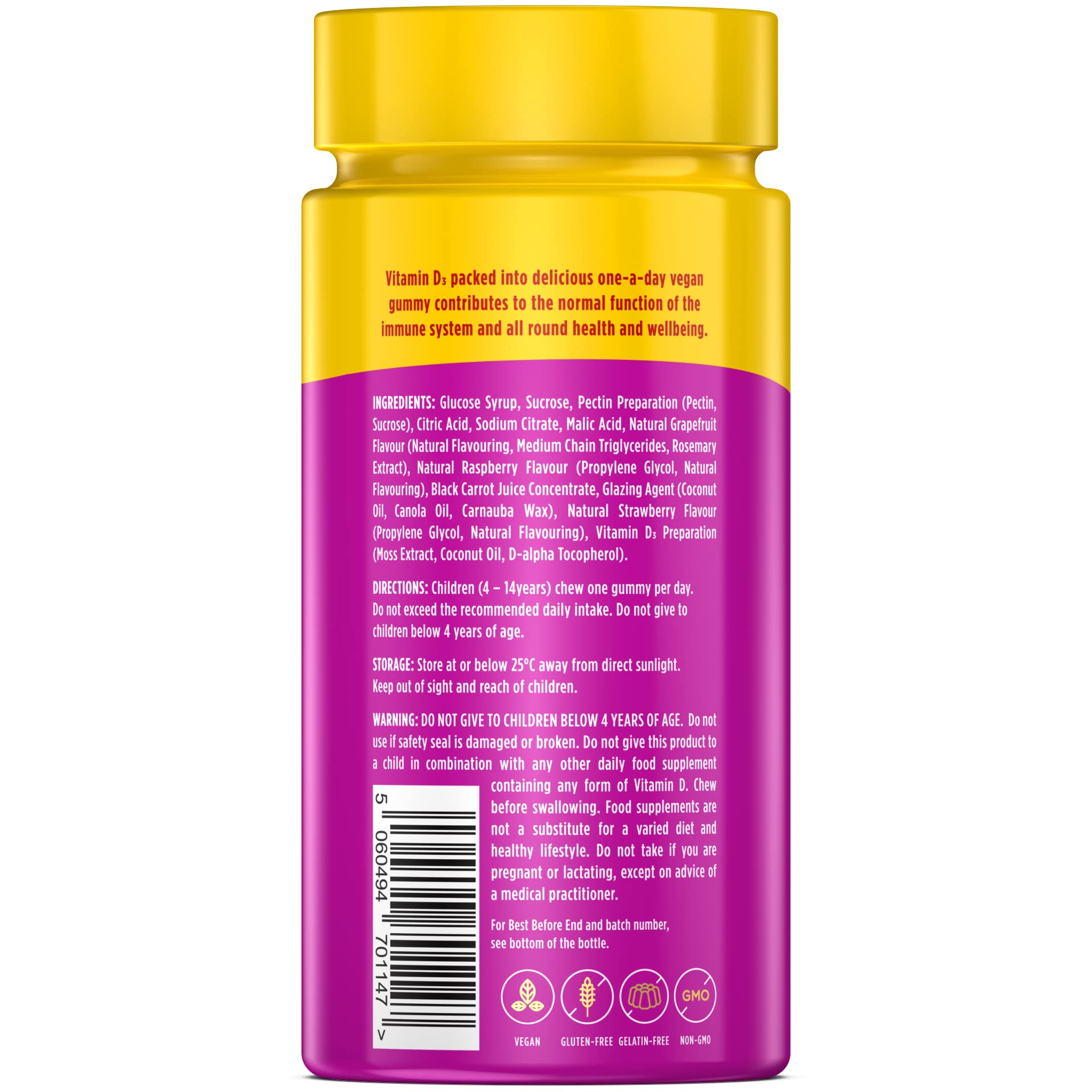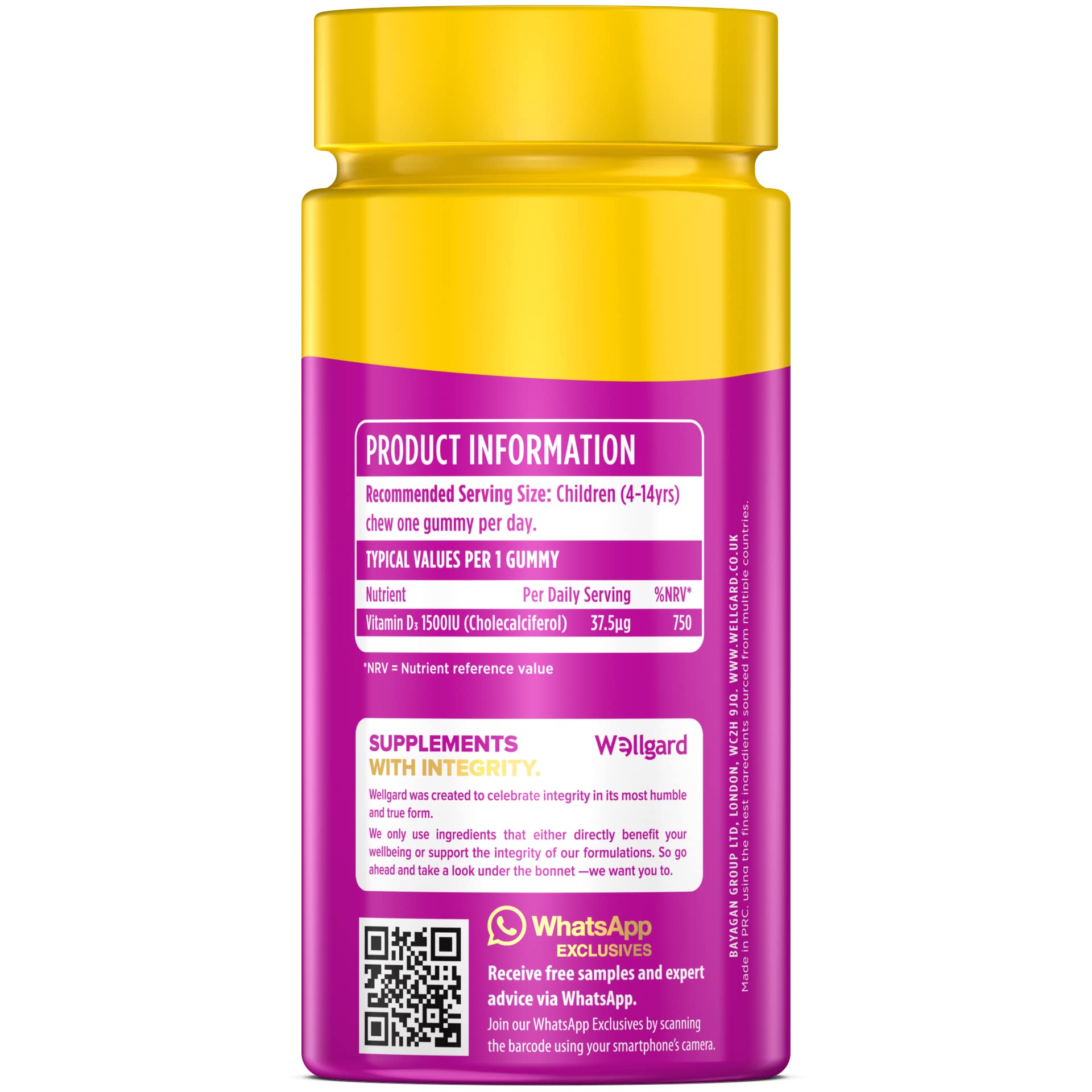 Wellgard Kids Vitamin D3 Gummies - 2 Month Supply - Vegan Chewable Vitamin D Gummies, Mixed Berry Flavour