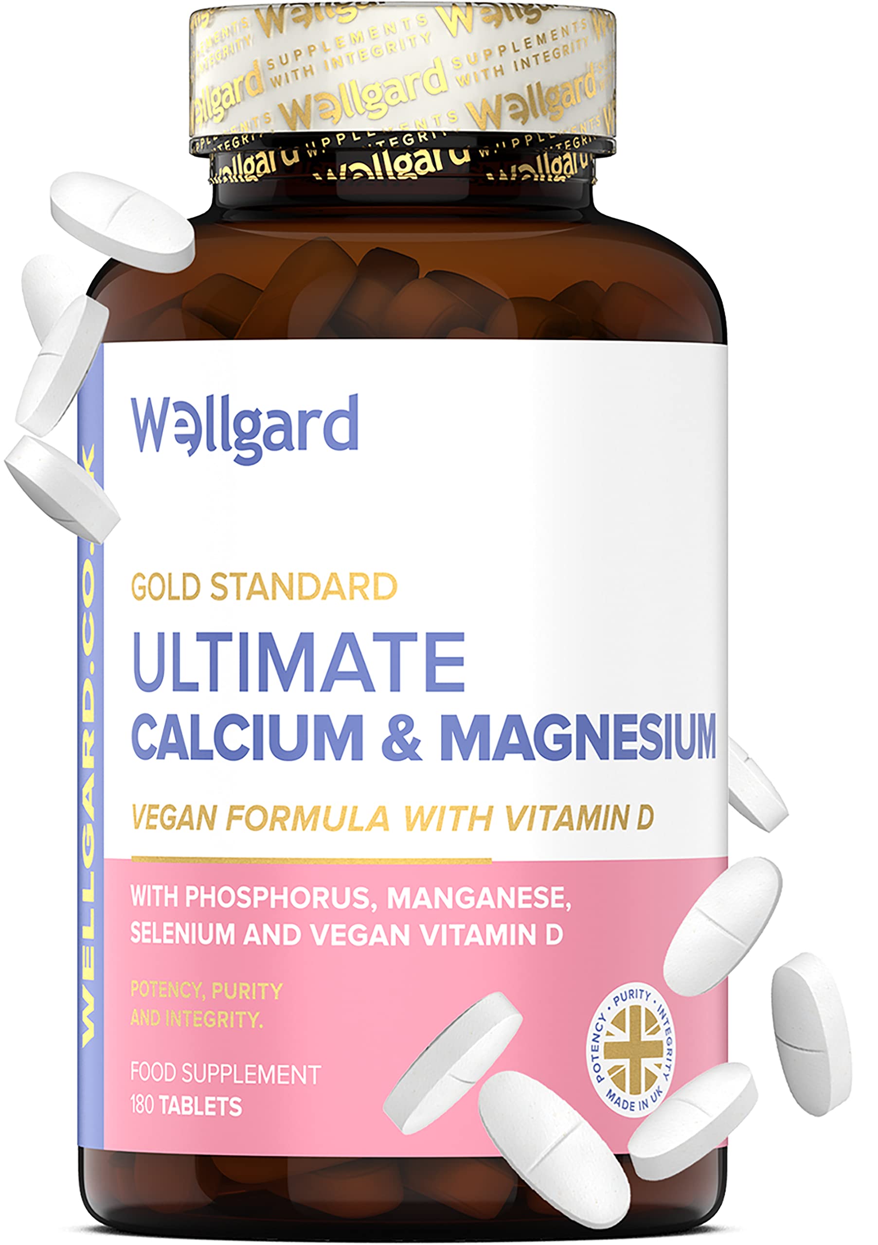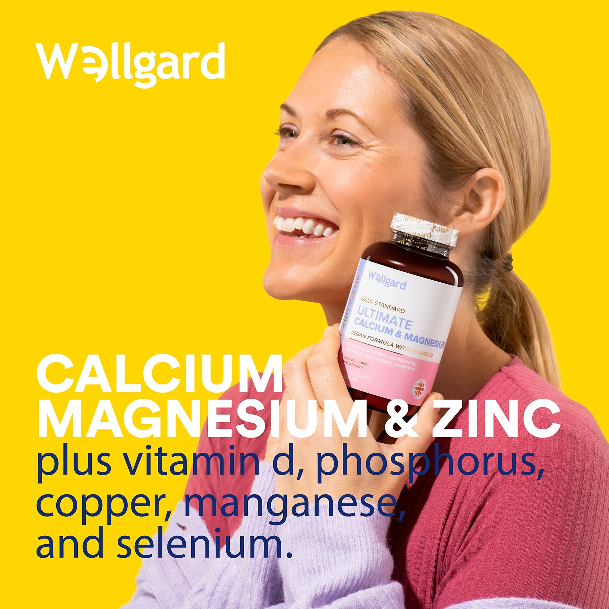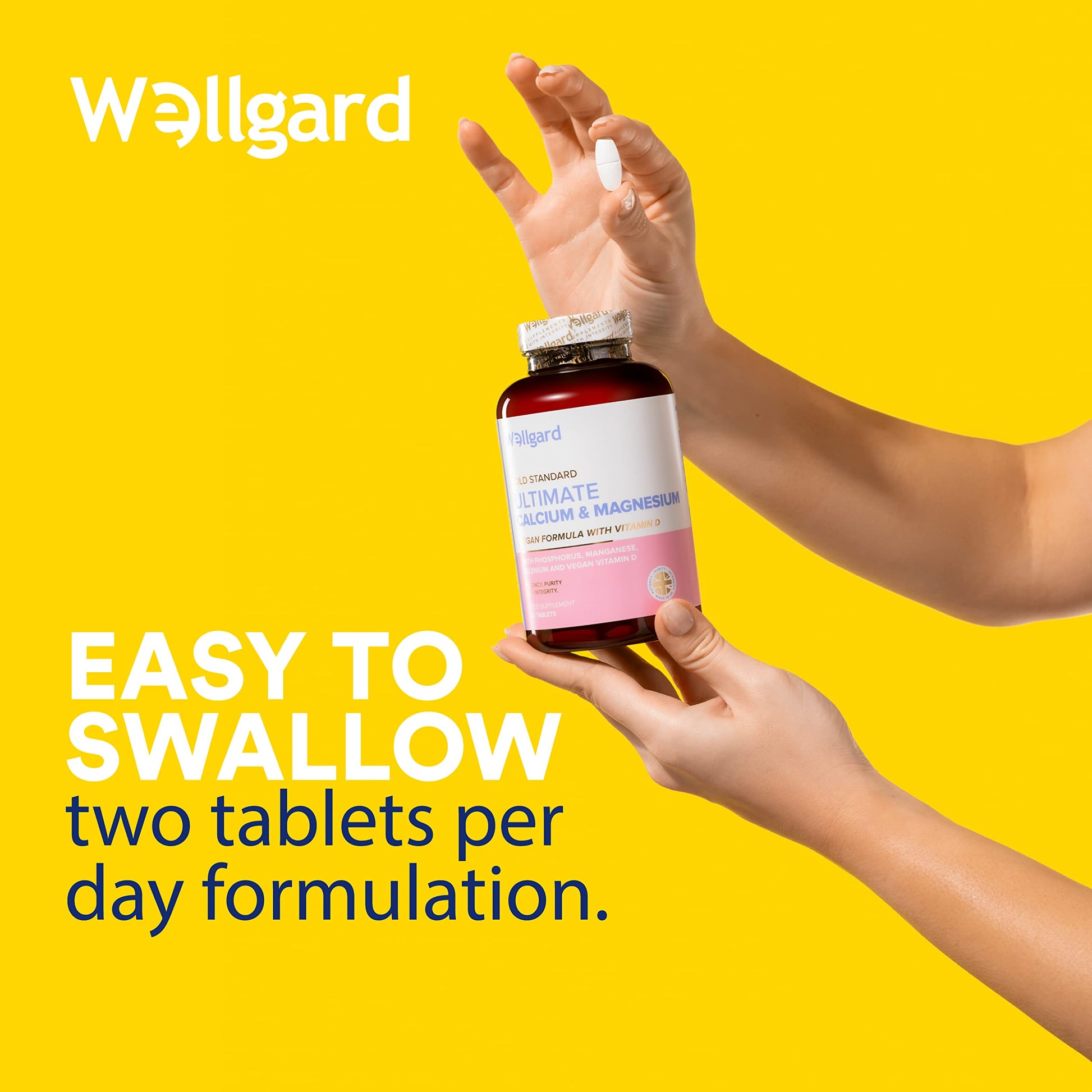 Wellgard Vegan Calcium Magnesium Zinc and Vitamin D Capsules - Calcium Supplement, Calcium Tablets with Phosphorus, Manganese, Selenium, Copper, Made in UK