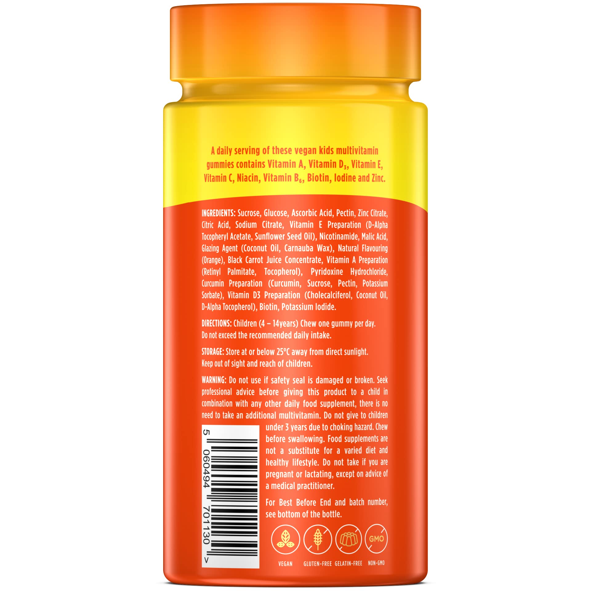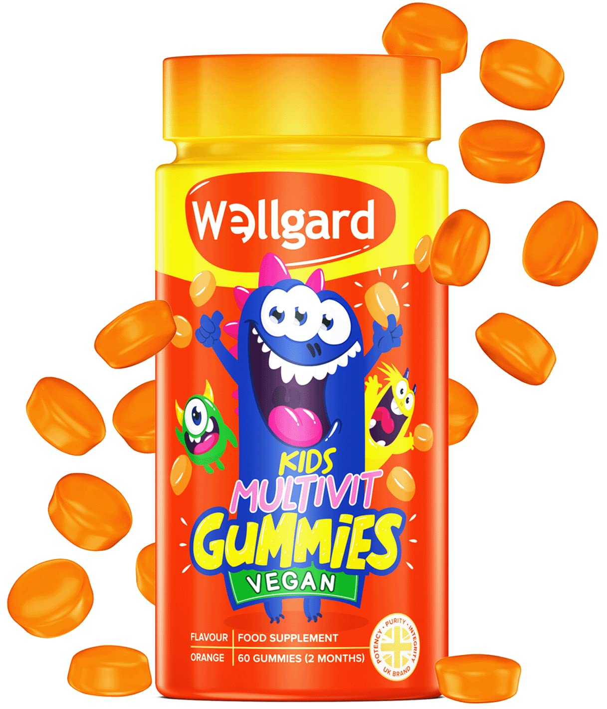 Wellgard Vegan Childrens Vitamins, Kids Multivitamin Gummies - Kids Vitamins Multivitamins, 60 Gummies, Orange Flavour