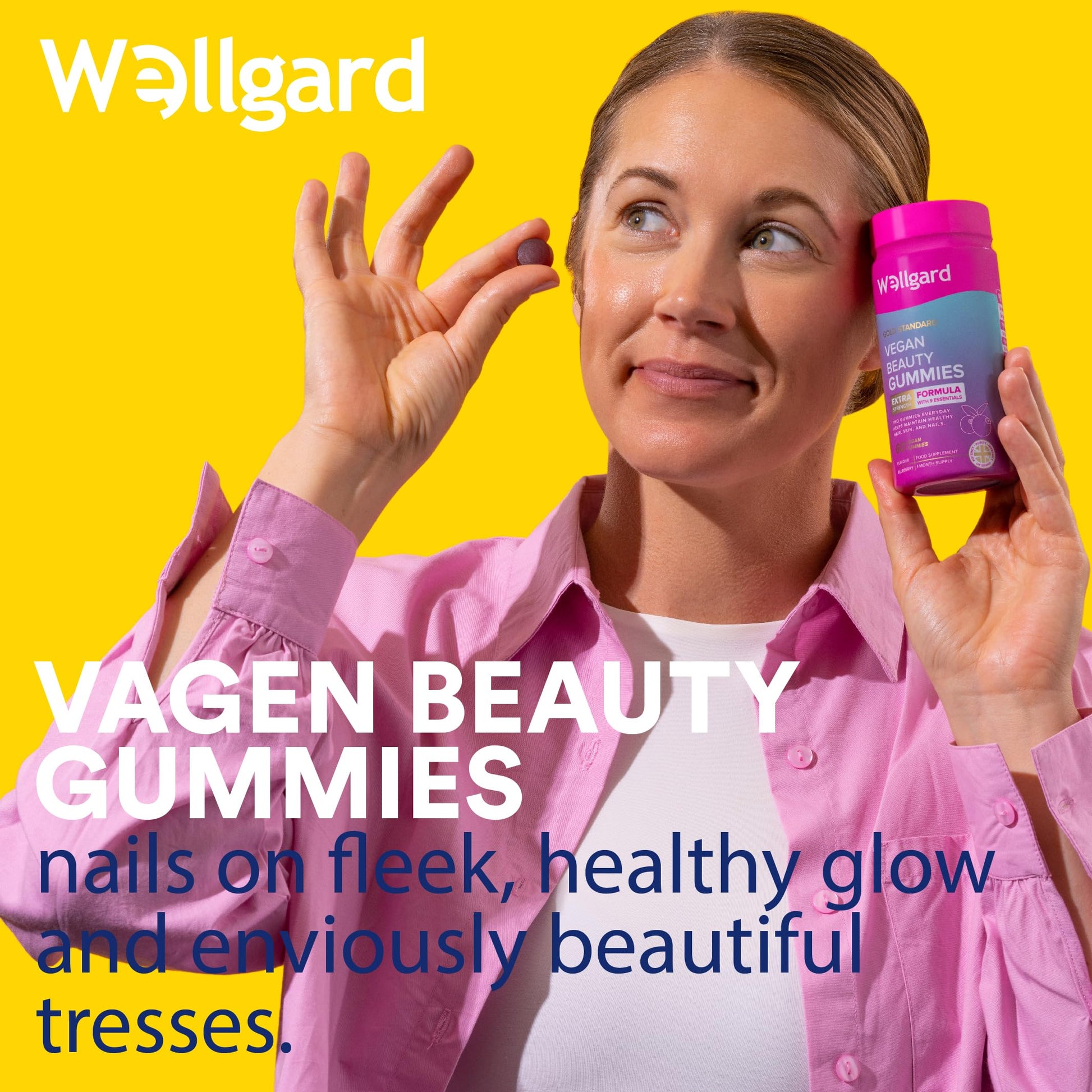 Wellgard Vegan Skin Hair and Nail Vitamins Gummies - Beauty Gummies with Biotin, Zinc, Vitamin A, Selenium, Hair Skin Nails Gummies