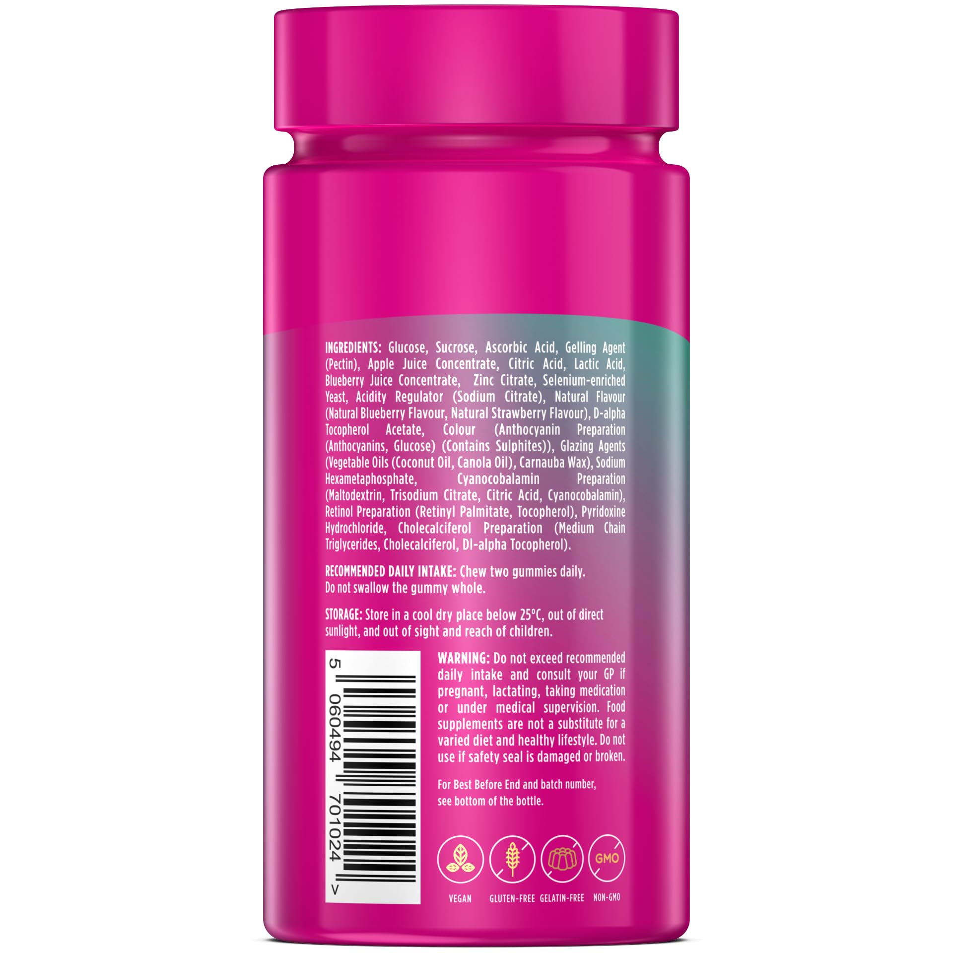 Daily serving of these vegan gummies contain Vitamin A, Vitamin B6, Biotin and Zinc which contributes to the maintenance of normal hair, skin and nails. hair skin and nails vitamins for women max skin hair and nails hair nails and skin vitamins hair gummies biotin gummies vitamin gummies zinc gummiesMore Info