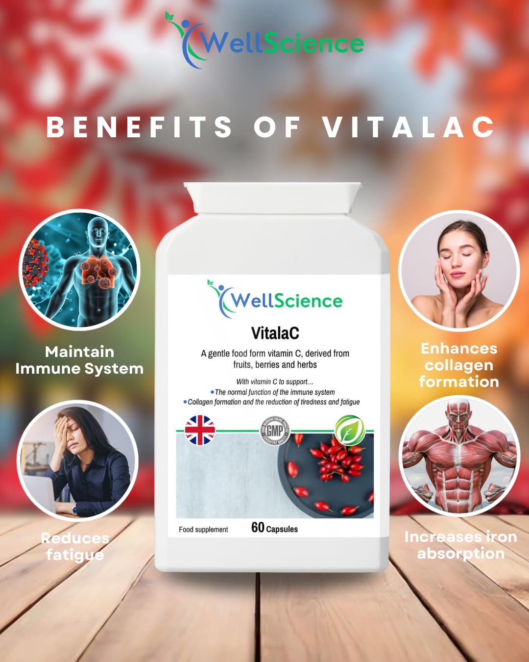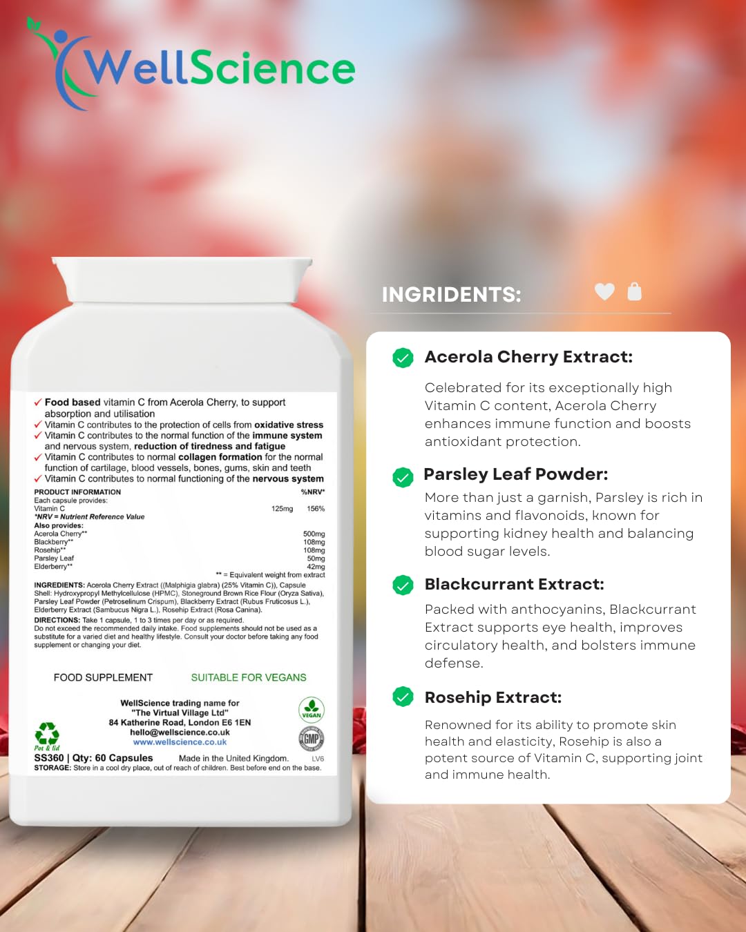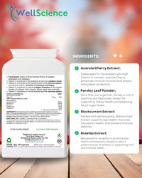 Wellscience WellScience VitalaC - Natural Vitamin C Supplement for Immune Support, Collagen Formation, and Antioxidant Protection - Acerola Cherry, Parsley, Blackcurrant, Rosehip, and Elderberry Extracts