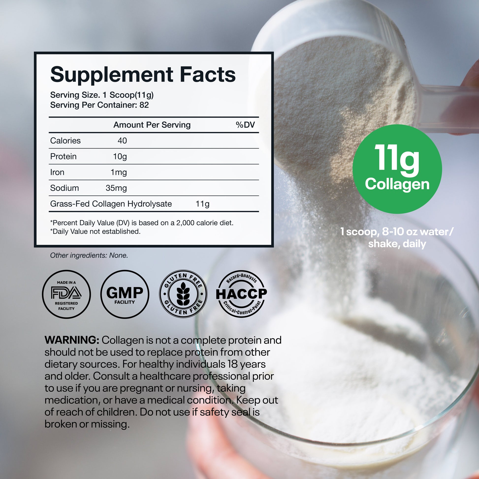 - Grass-Fed Collagen Hydrolysate — 11g per serving