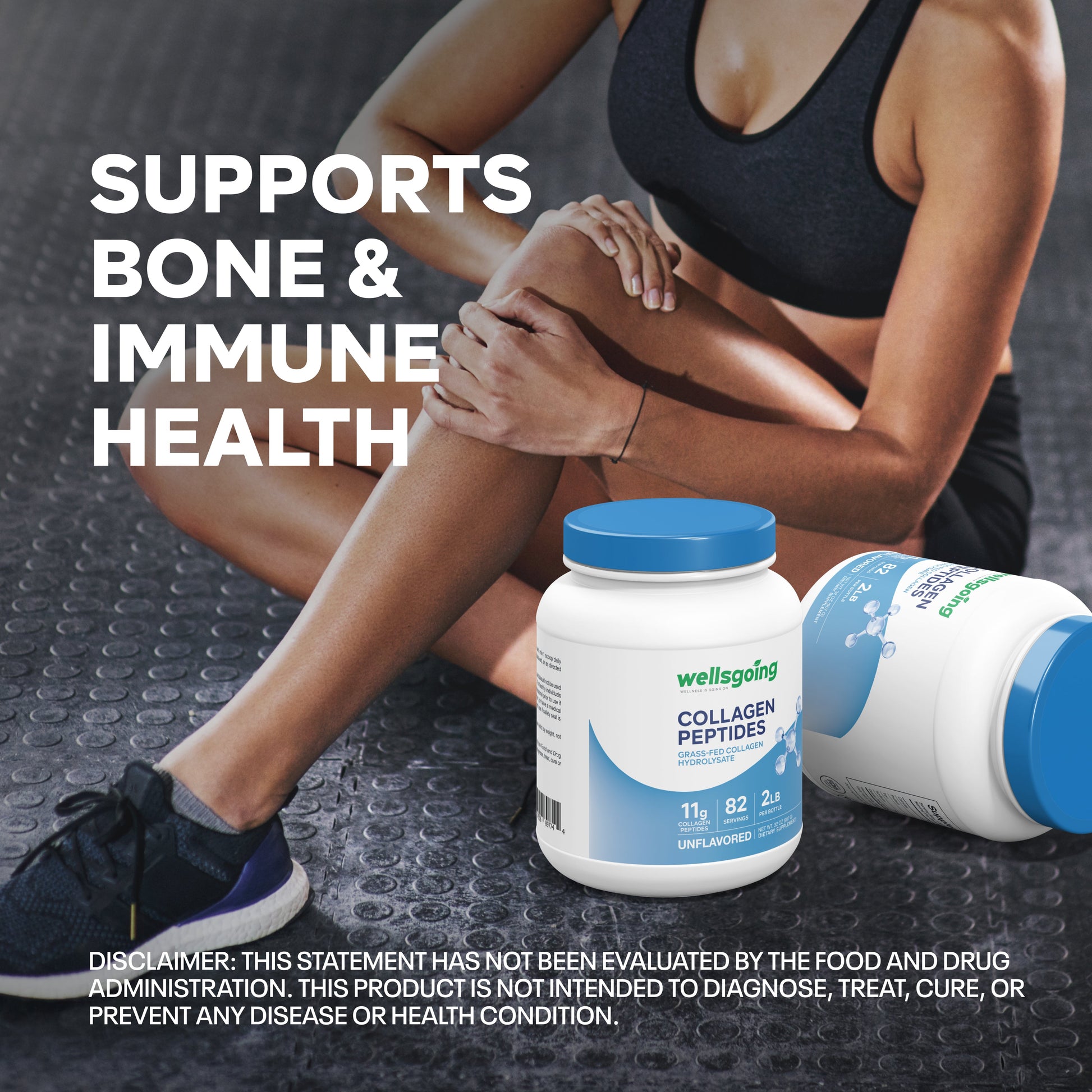 Wellsgoing Collagen Peptides Powder delivers 11 grams of grass-fed collagen peptides per serving, sourced from collagen hydrolysate. Designed for daily use, this unflavored powder supports hair, skin, nails, bones, and joint health as part of a balanced lifestyle.