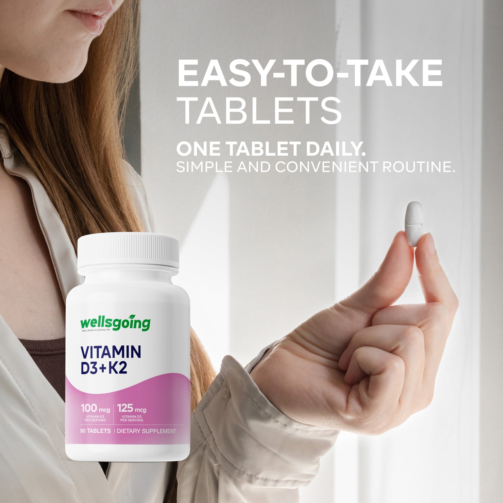 Wellsgoing Vitamin D3 + K2 comes in easy-to-swallow softgels, designed for once-daily use. With 30 softgels per bottle, you get a full 30-day supply that fits seamlessly into your routine.