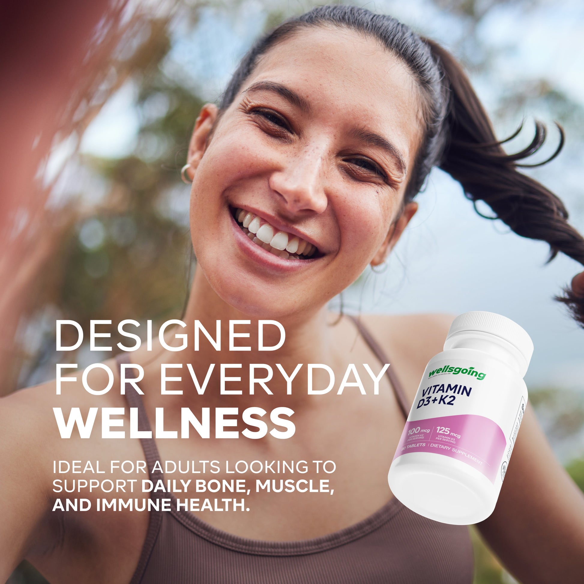 Wellsgoing Vitamin D3 + K2 5000 IU – Bone, Teeth & Immune Support (90 Tablets)