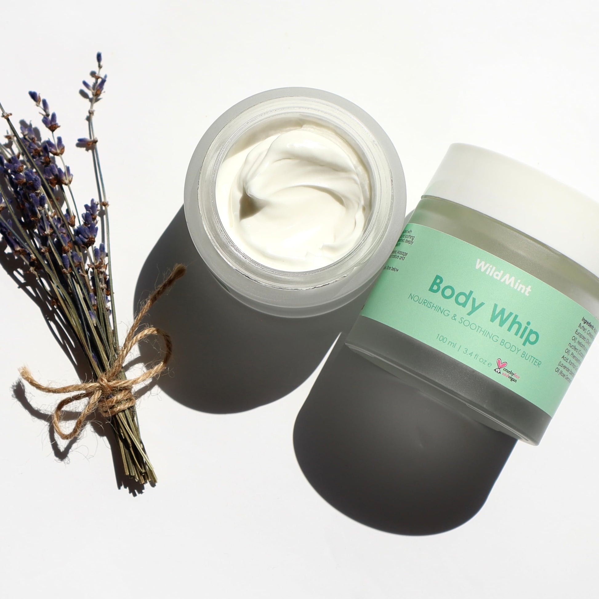 WildMint Body Whip Natural Body Butter | Ultra-Hydrating Body Cream for Skin Soft & Smooth | Shea Butter Hydrates & Boost Collagen for Dry, Damaged Skin| UK Made Vegan & Cruelty-Free Skincare | 120ml