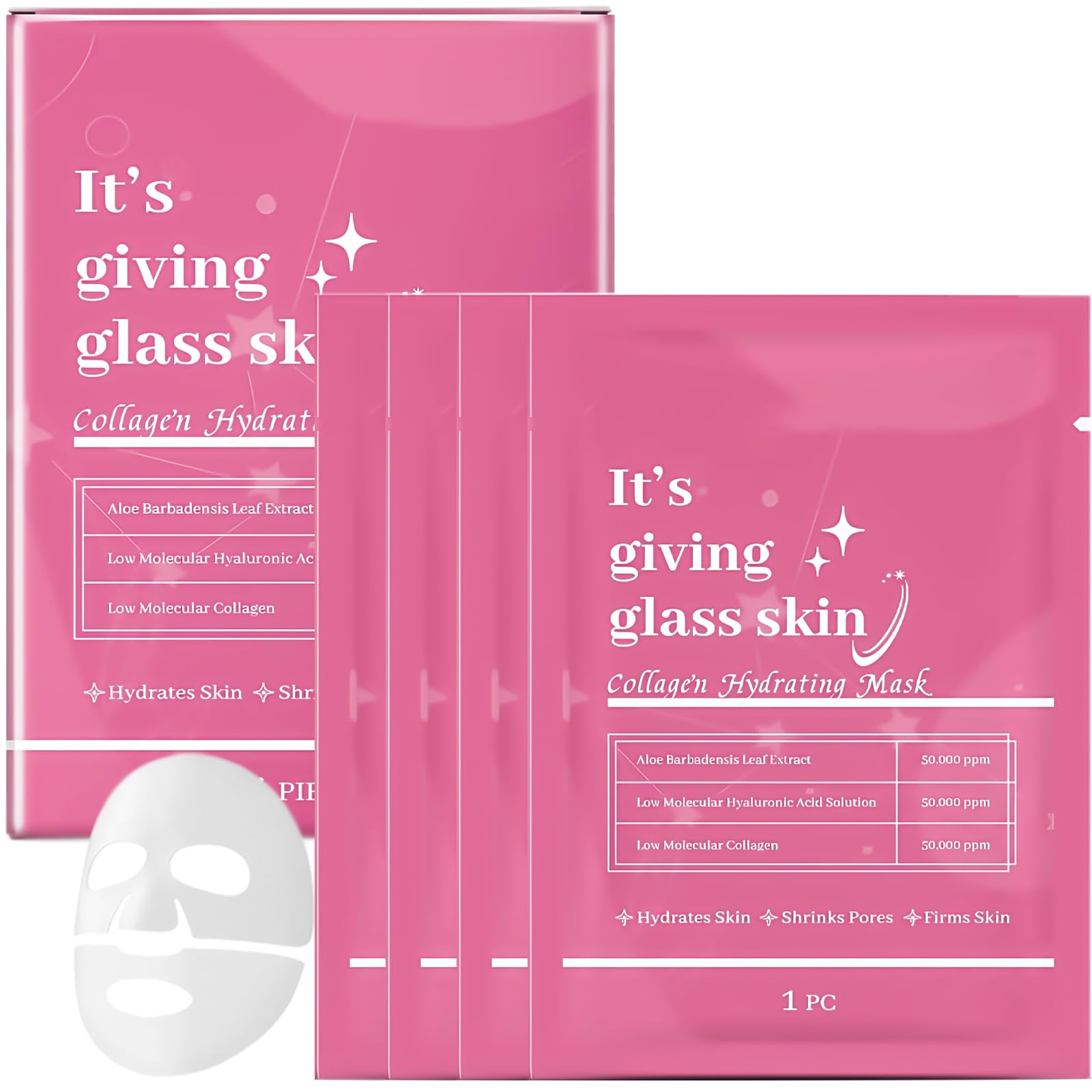 Wormeer 4PCS Collagen Face Mask - Face Masks Skincare for Deep Hydration & Firming - Glass Skin - Collagen Overnight Peel-Off Mask to Improve Fine Lines