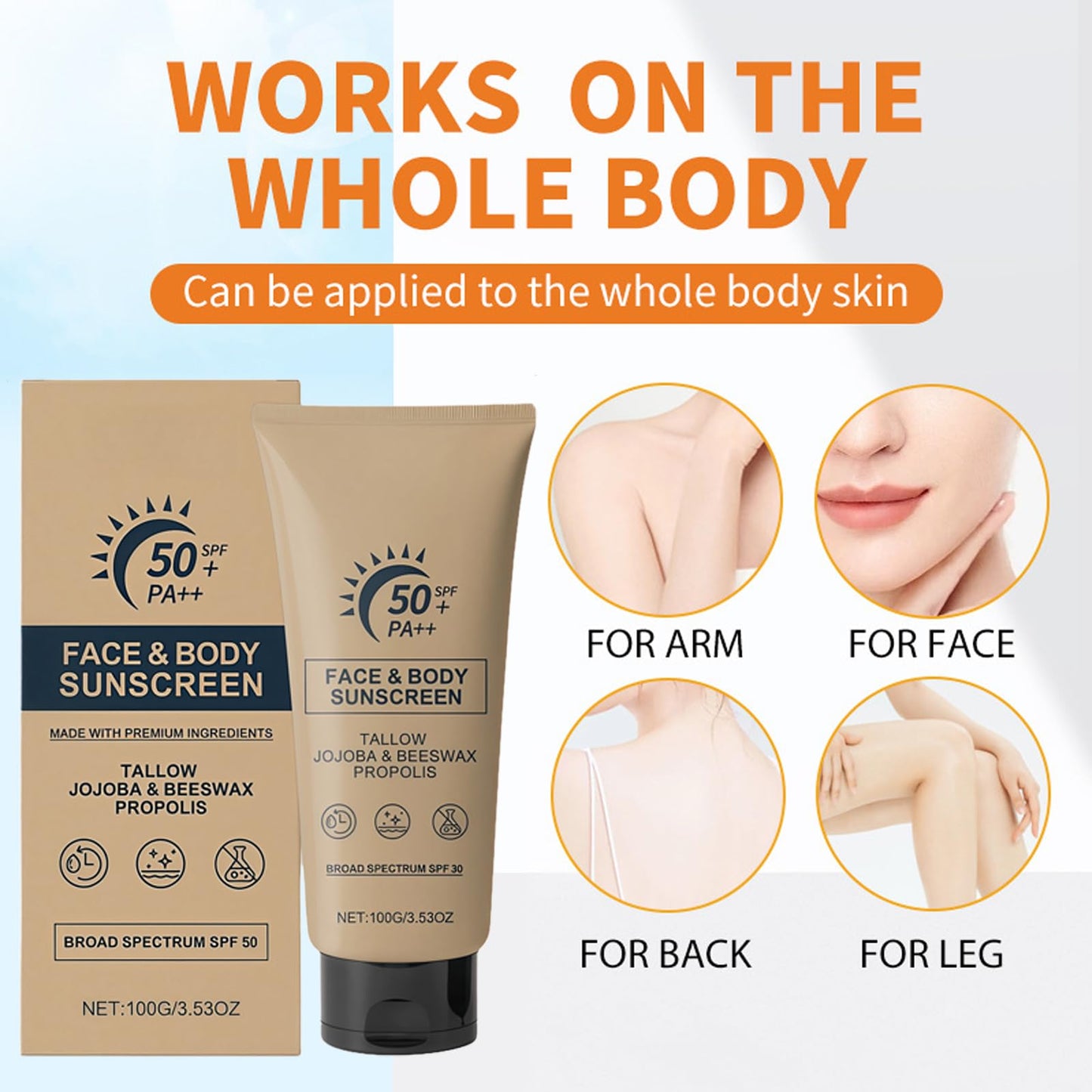 Wormeer Beef Tallow Sun Cream SPF 50+, Natural Sunscreen & Face Moisturiser, Grass Fed Tallow Sunscreen for Dry Sensitive Skin, No White Cast, Non Greasy, 100g