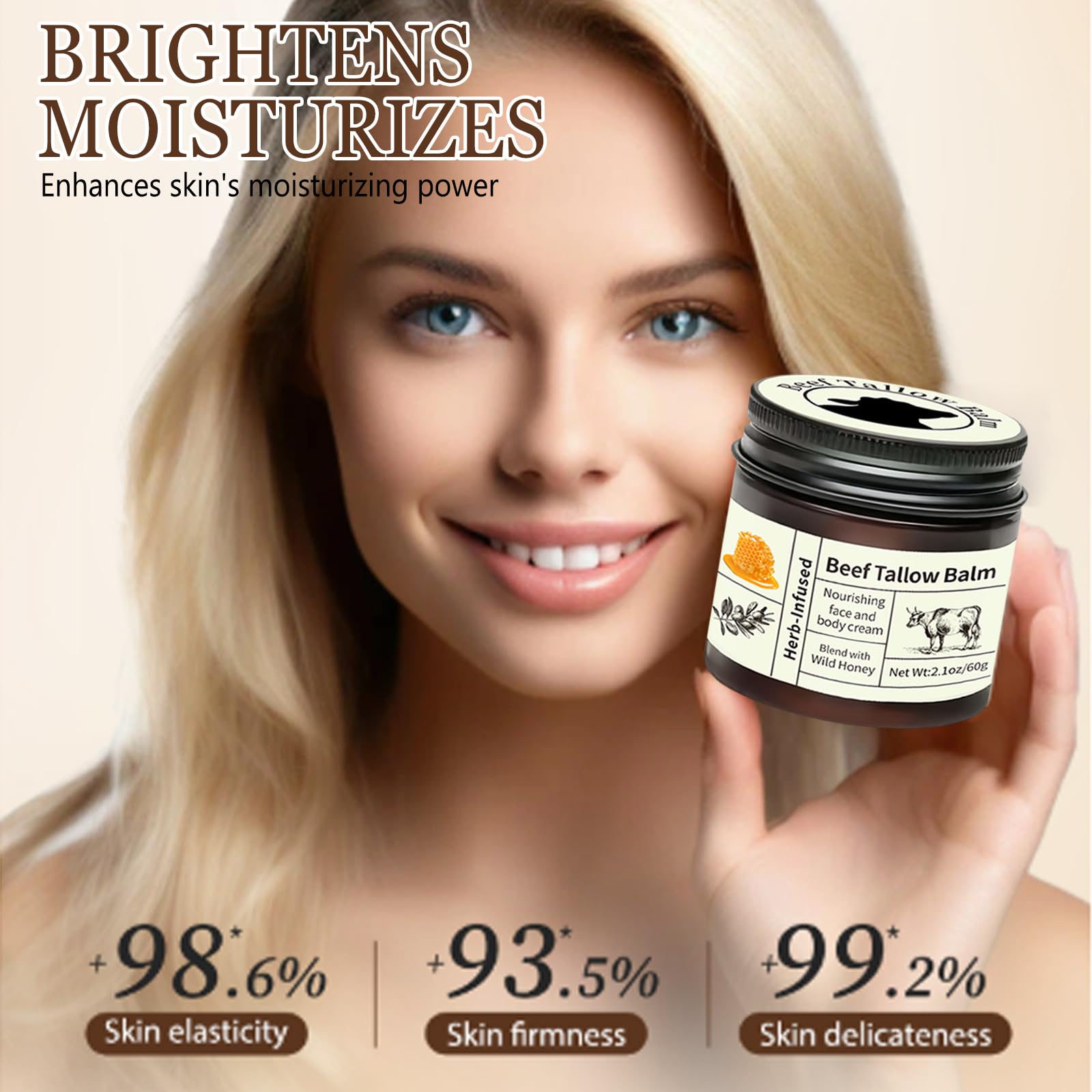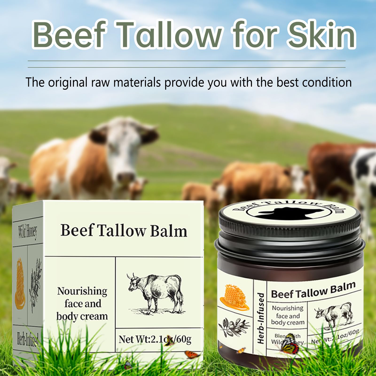 Wormeer Grass-Fed Beef Tallow Honey Balm for Skin - Nourishing Face & Body Cream for Dry Skin - Moisturizing Skincare with Mild Ingredients (Color, A)