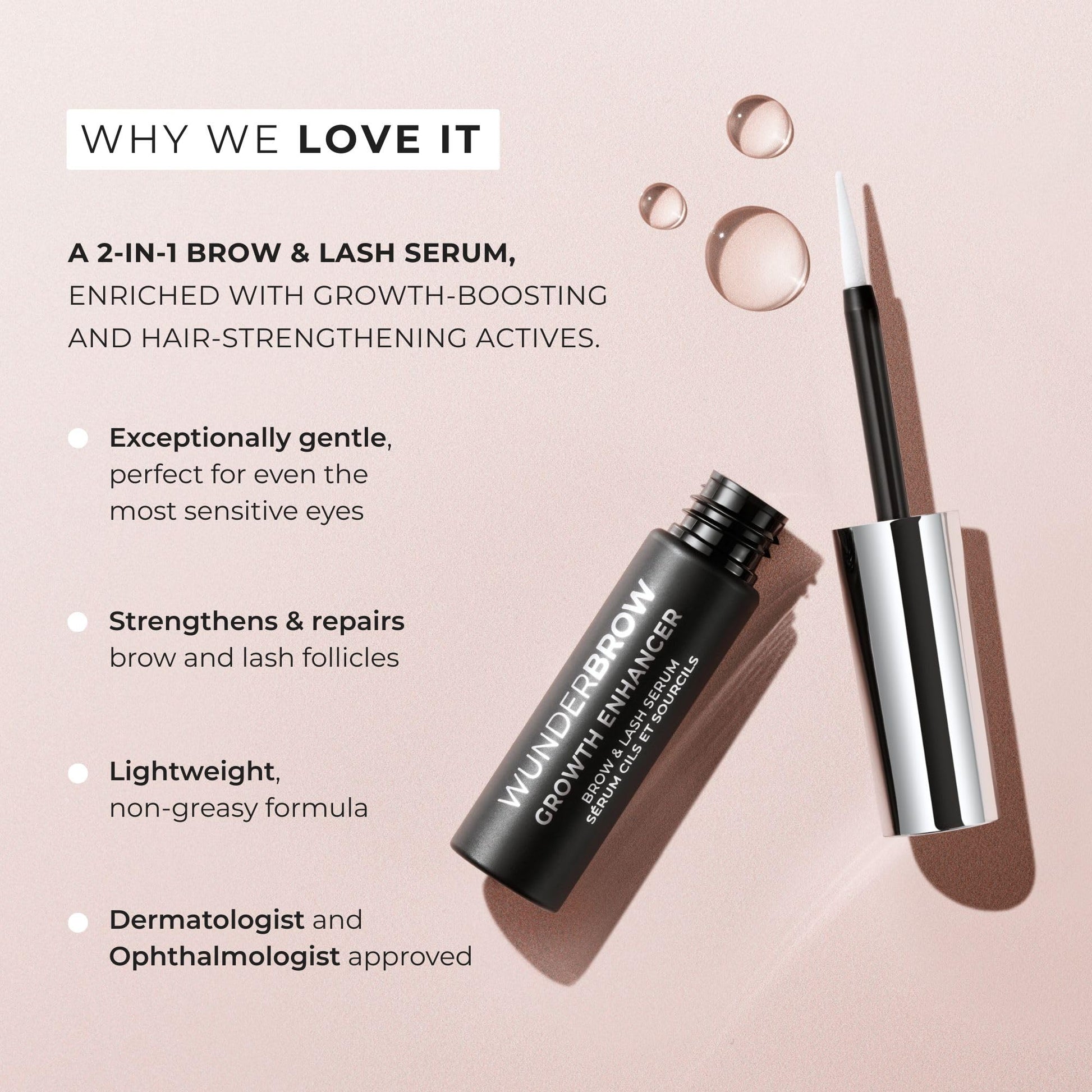 WUNDERBROW Wunderbrow Growth Enhancer Brow & Lash Serum, 2-in-1 Growth Serum For Fuller, Thicker, Healthier Brows & Lashes, Clinically Tested Formula, Visible Results in 6-8 weeks