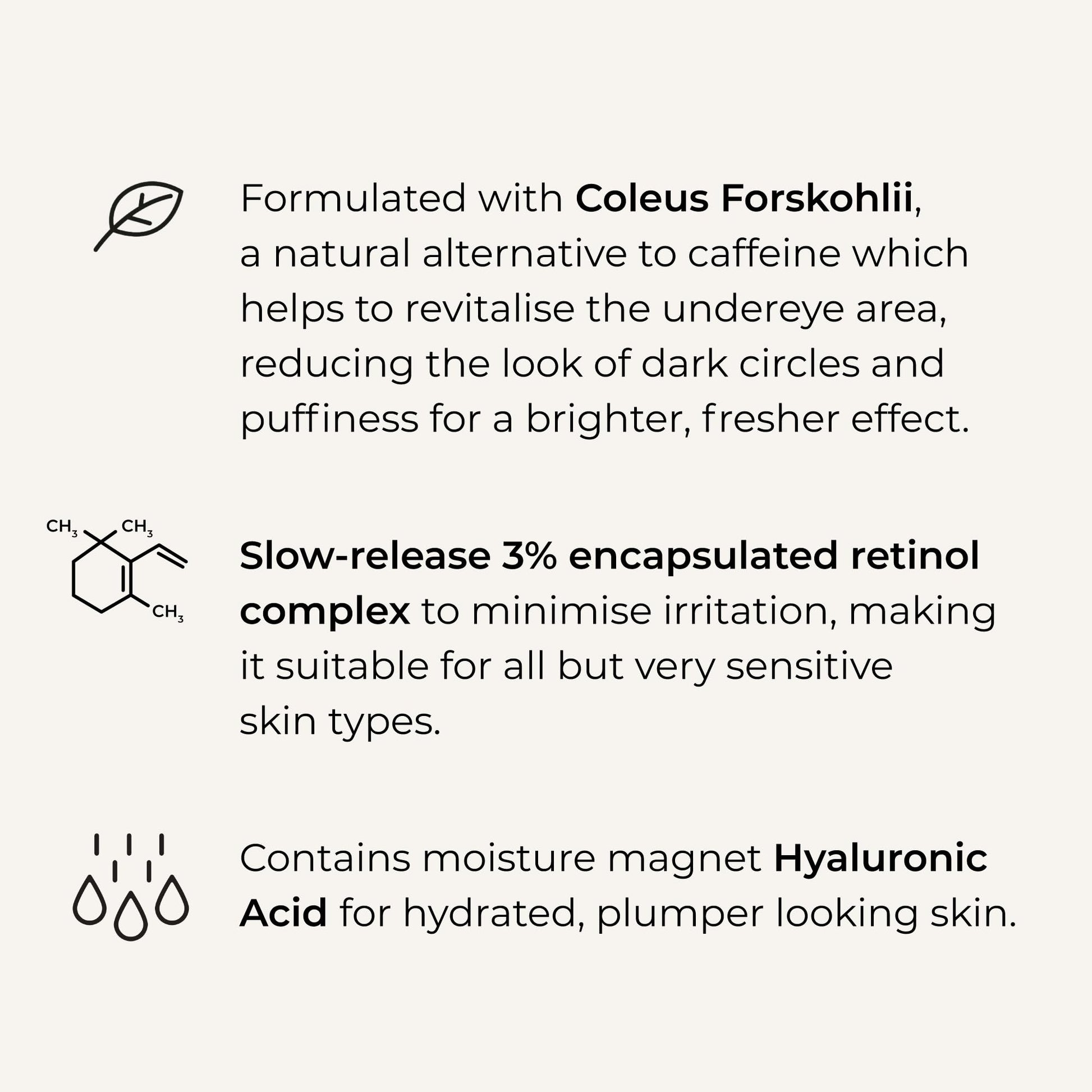 "You loved Wunderlift.. Now complete your skin care routine with Wunderlift Night! A hydrating eye cream specifically designed for the delicate eye area, to refresh the look of tired eyes. The Swiss-formulated cream is powered by a slow-release, 3% encapsulated retinol complex to help promote skin renewal, reducing the appearance of fine lines and wrinkles, whilst evening out the skin. It also contains moisture magnet Hyaluronic Acid to hydrate and plump the skin, and Coleus Forskohlii, a plant derived natural alternative to caffeine to help revitalise the under-eye area, minimising the appearance of dark circles and puffiness for a brighter and refreshed look. USER TRIAL RESULTS - 91% agree the eye area appears brighter, smoother and revived - 82% agree the appearance of fine lines, wrinkles and puffiness are reduced - 97% agree the eye area looks hydrated - 82% agree the skin looks and feels firmer and more even *in a panel of 34 women aged 40+ over 4 weeks, applying once daily WHY DO WE LOVE IT? Rich yet light-weight and fast absorbing, with a non-greasy finish. Rich in antioxidants to soothe and protect the skin. Vegan, cruelty free, fragrance free, paraben free."More Info